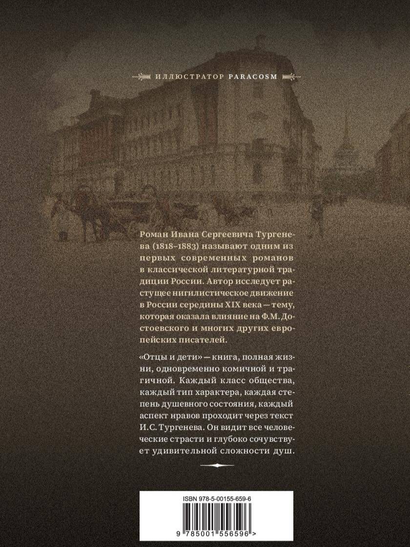 Роман Ивана Сергеевича Тургенева (1818-1883) называют одним из первых современных романов в классической литературной традиции России. Автор исследует растущее нигилистическое движение в России середины XIX века - тему, которая оказала влияние на Ф.М. Достоевского и многих других европейских писателей. "Отцы и дети" - книга, полная жизни, одновременно комичной и трагичной. Каждый класс общества, каждый тип характера, каждая степень душевного состояния, каждый аспект нравов проходит через текст И.С. Тургенева. Он видит все человеческие страсти и глубоко сочувствует удивительной сложности душ. Роман входит в обязательный список для чтения школьной и университетской программы. Иллюстрация на обложке ParaCosm.| Издательство | Яуза-каталог ООО |