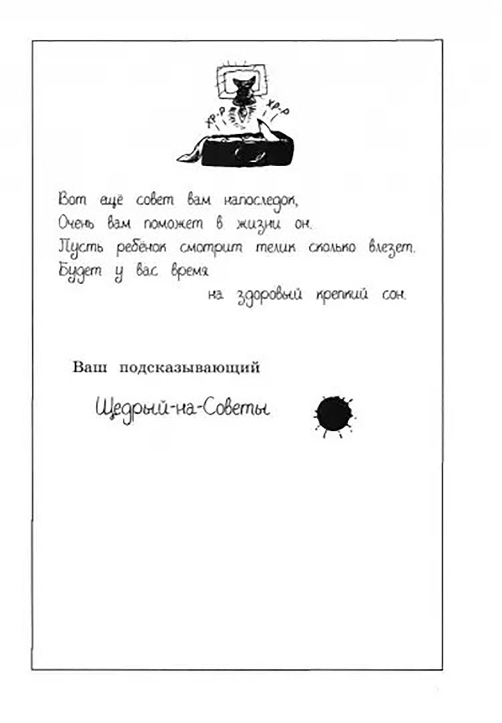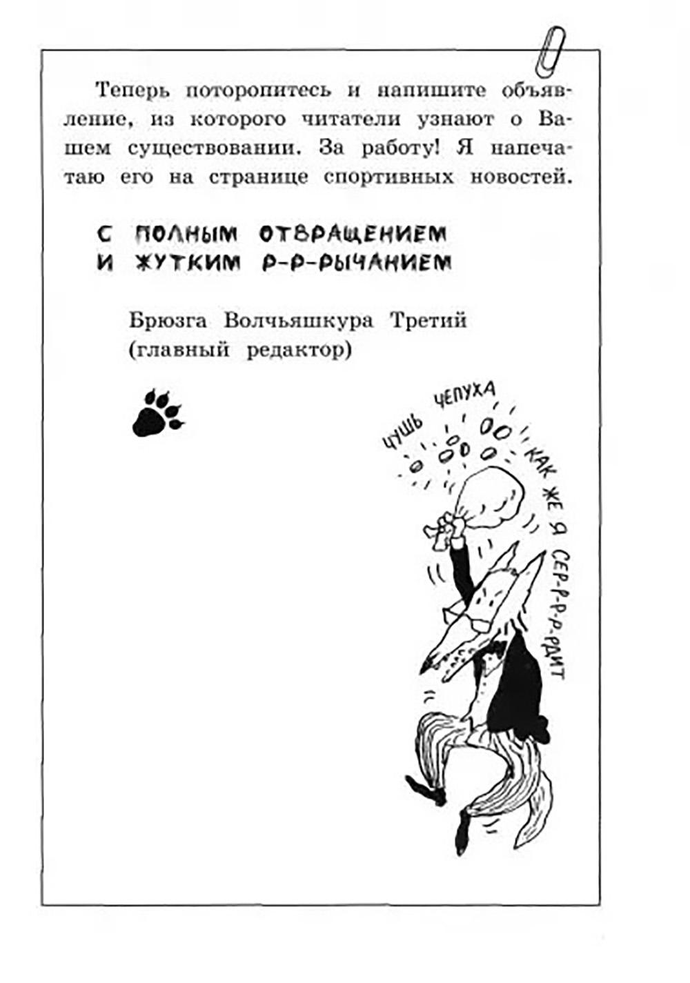 У Малютки Волка большая новость: еженедельник «Волк» предлагает ему поработать в отделе писем. Жители Звериного графства часто пишут в редакцию о своих делах и ждут мудрого совета. Изобретательный герой ответит на все обращения - недаром его блестящую фантазию и смекалистость отмечает даже главный редактор газеты. В авторской колонке Малютки Волка каждый найдёт остроумное решение самой трудной проблемы. Пятая книга, как и предыдущие, вся состоит из забавных писем - на этот раз они адресованы не только родителям, но в них по-прежнему много шуток, рисунков и чернильных клякс. Для детей 7-10 лет.| Издательство | Изд. Лабиринт Пресс |