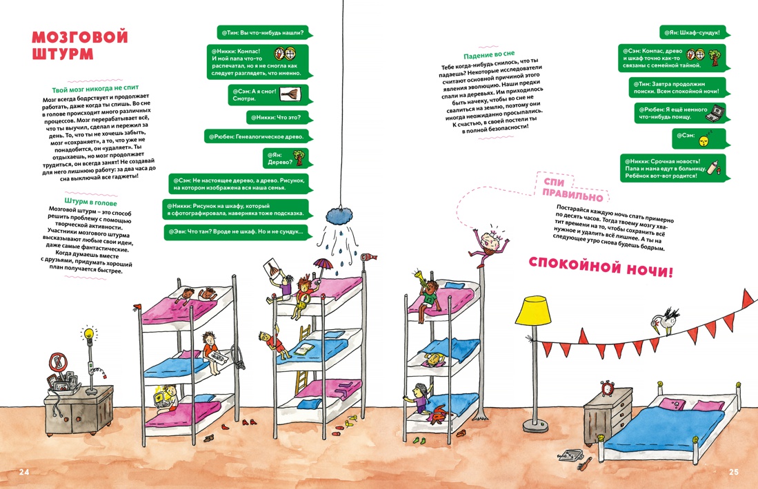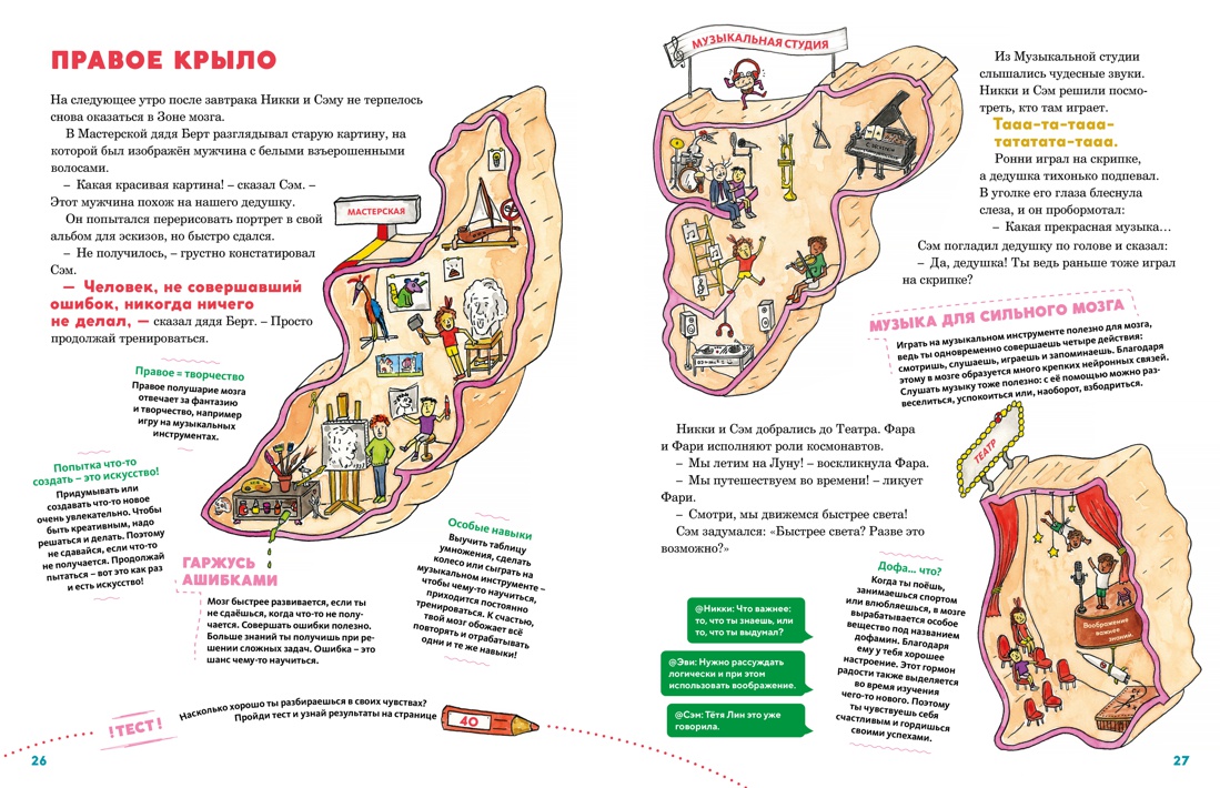 Головной мозг контролирует все процессы в теле человека: от способности мыслить и принимать решения до чувства голода и непреодолимого желания поспать утром на пять минуток больше. С помощью этой книги ты раскроешь все секреты самого важного органа нашего тела! Увлекательный рассказ о строении и особенностях работы головного мозга пересекается с оригинальной историей семьи. Вместе с братом и сестрой пройди по залам отеля «Головой мозг» и разгадай семейную тайну, а также узнай всё о функционировании головного мозга и о том, как стимулировать его работу. В конце книги есть тесты, с помощью которых ты определишь свои сильные стороны и таланты!