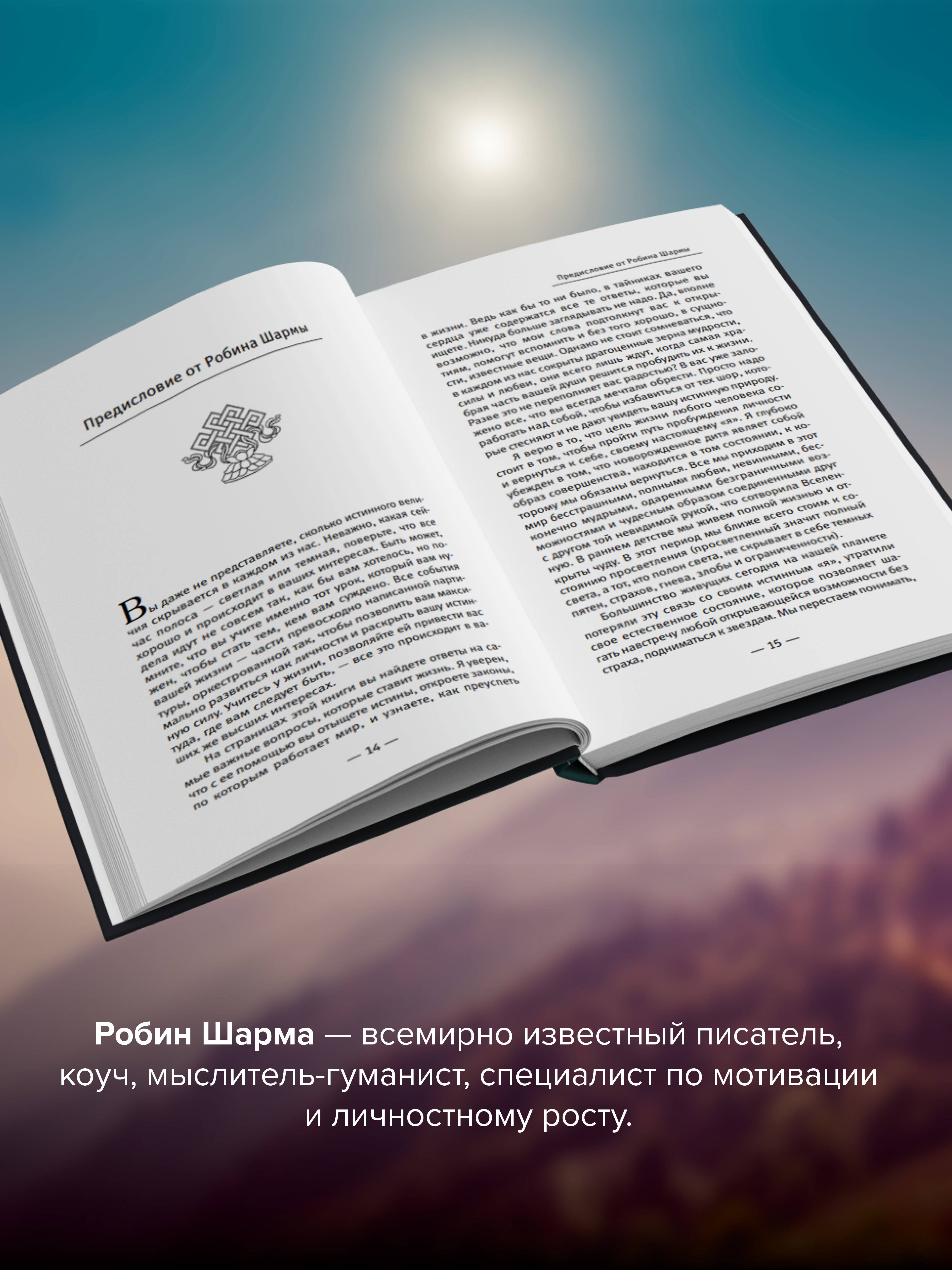 Долгожданное новое издание бестселлера Робина Шармы - одного из самых знаменитых учителей современности в области личной эффективности. Эта книга - ключ к лучшей жизни, счастью, процветанию и внутреннему покою, которых вы заслуживаете. Объединив восточную мудрость с западными принципами успеха, в этом вдохновляющем, но очень практичном руководстве Робин Шарма предлагает план захватывающей, изобильной жизни, богатой радостью и достижениями. В свойственной ему увлекательной манере повествования Робин Шарма рассказывает историю Дара Сандерсена, менеджера средних лет с хорошей работой, красивым домом и стабильным доходом. Несмотря на свой внешне очевидный успех, Дар не удовлетворен жизнью. После встречи с Монахом он отправляется в большое путешествие, чтобы открыть свое предназначение. Эта книга раскрывает вселенские законы. Она - ваш путеводитель по внутреннему миру, проводник к подлинному величию. Прочитав ее, вы поймете, где искать все, что мечтали обрести, - успех, благополучие, счастье.| Издательство | Издательство "АСТ" |
