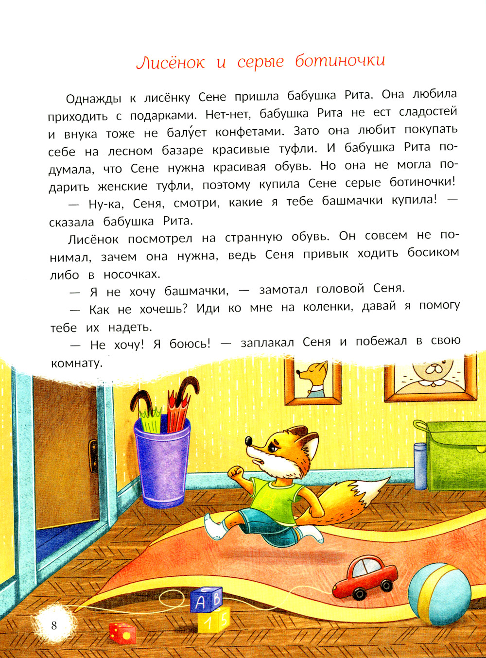 Лисёнок Сеня боится ночного чудища, а ещё игрушечную бабку-ёжку. Он хочет есть конфеты каждый день вместо полезных фруктов и овощей и отказывается надевать ботиночки, которые принесла бабушка. На помощь Сене приходят родные и близкие. Они делятся с ним особыми секретами, с помощью которых маленькому лисёнку удаётся справиться со своими страхами и капризами!| Издательство | Феникс |