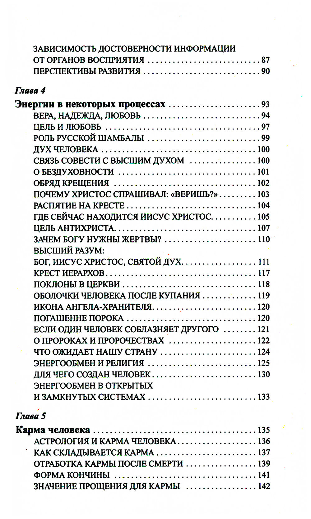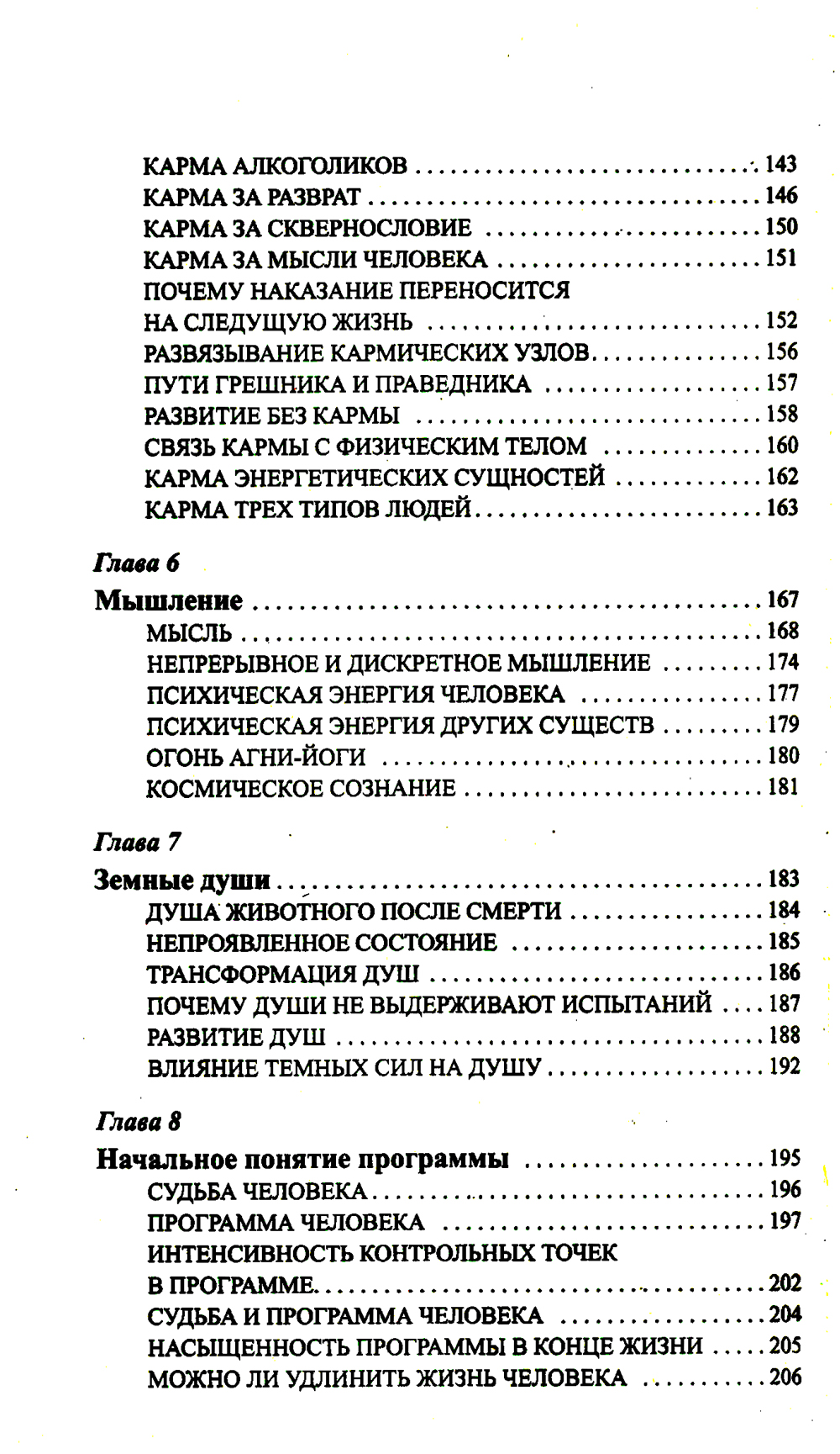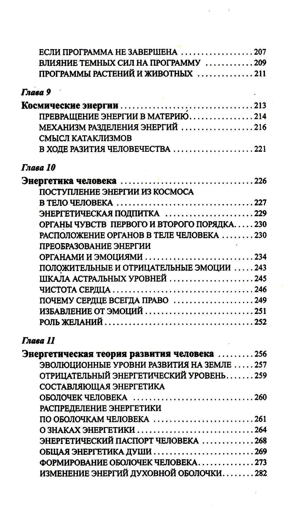Данная книга знакомит читателя с начальными понятиями индивидуальной программы человека, особенностями её строения, влияющего на продолжительность жизни и судьбу человека. Рассказывает об отдельных видах кармы и развязывании кармических узлов, об энергетическом паспорте человека, характеризующем его внутреннюю суть, знакомит с энергетической теорией развития человека, а также повествует об энергиях рождения и смерти. Книга раскрывает энергетические свойства морали и её влияние на набор душой положительных и отрицательных энергий, особенности духовного совершенствования, знакомит читателя с влиянием времени на психику человека, с особенностями течения внутреннего и внешнего времени индивида и планет. Книга повествует о роли спутников для планет, о чёрных и белых дырах в Космосе и многом другом.| Издательство | Амрита-Русь |