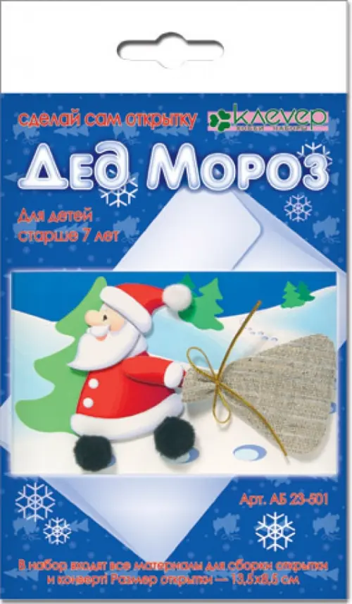 Комплектация: белая открытка; цветной картон и цветная бумага; ткань; шнур; помпоны: маленький и большие; двухсторонняя клейкая лента (скотч), тонкая и объемная; конверт; инструкция.