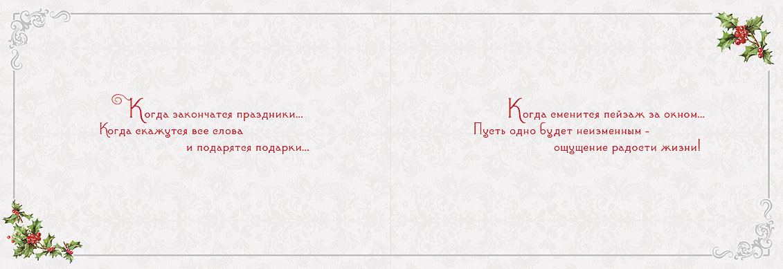 <p>Тема: С Новым годом и Рождеством</p><p>Размер: Открытка Лакарт 137х200</p><p>Украшение: Печать</p>