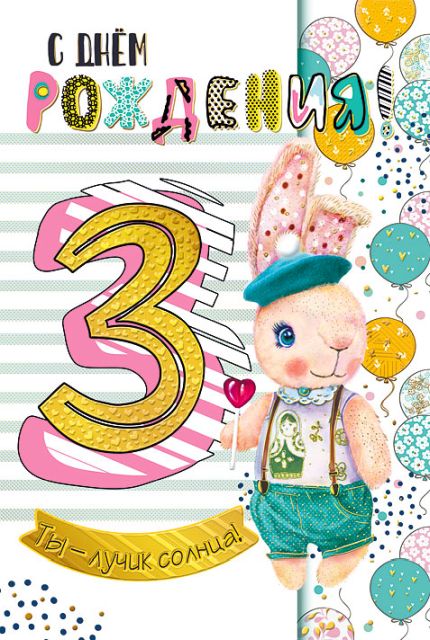 Открытка-поздравление "С Днем рождения! 3 годика"