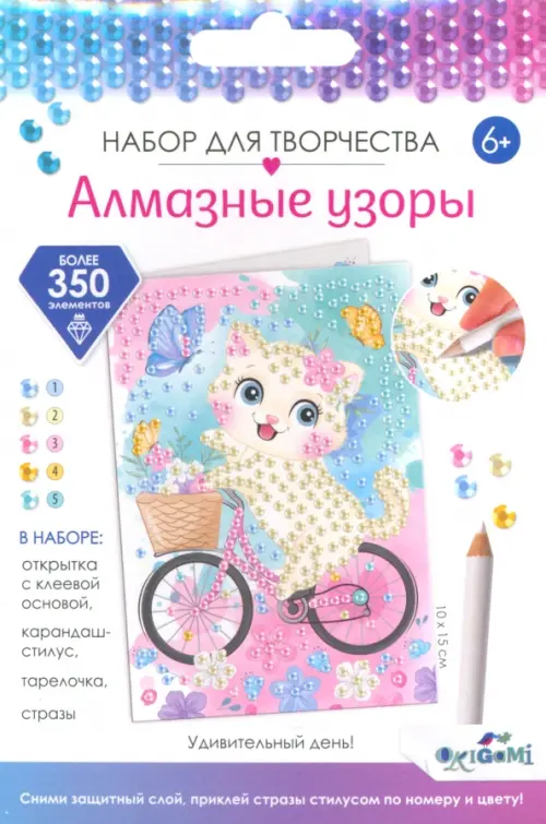Открытка с очаровательным кошечкой в формате "укрась и подари" подарит радость и веселье самым близким! Более 500 страз в комплекте оживят красочную иллюстрацию ярким блеском. Творчество-антистресс поможет расслабиться и забыть о повседневных заботах. Процесс создания позволит улучшить мелкую моторику рук и станет интересным хобби для взрослых и детей. Уютный подарок и медитация 2в1!