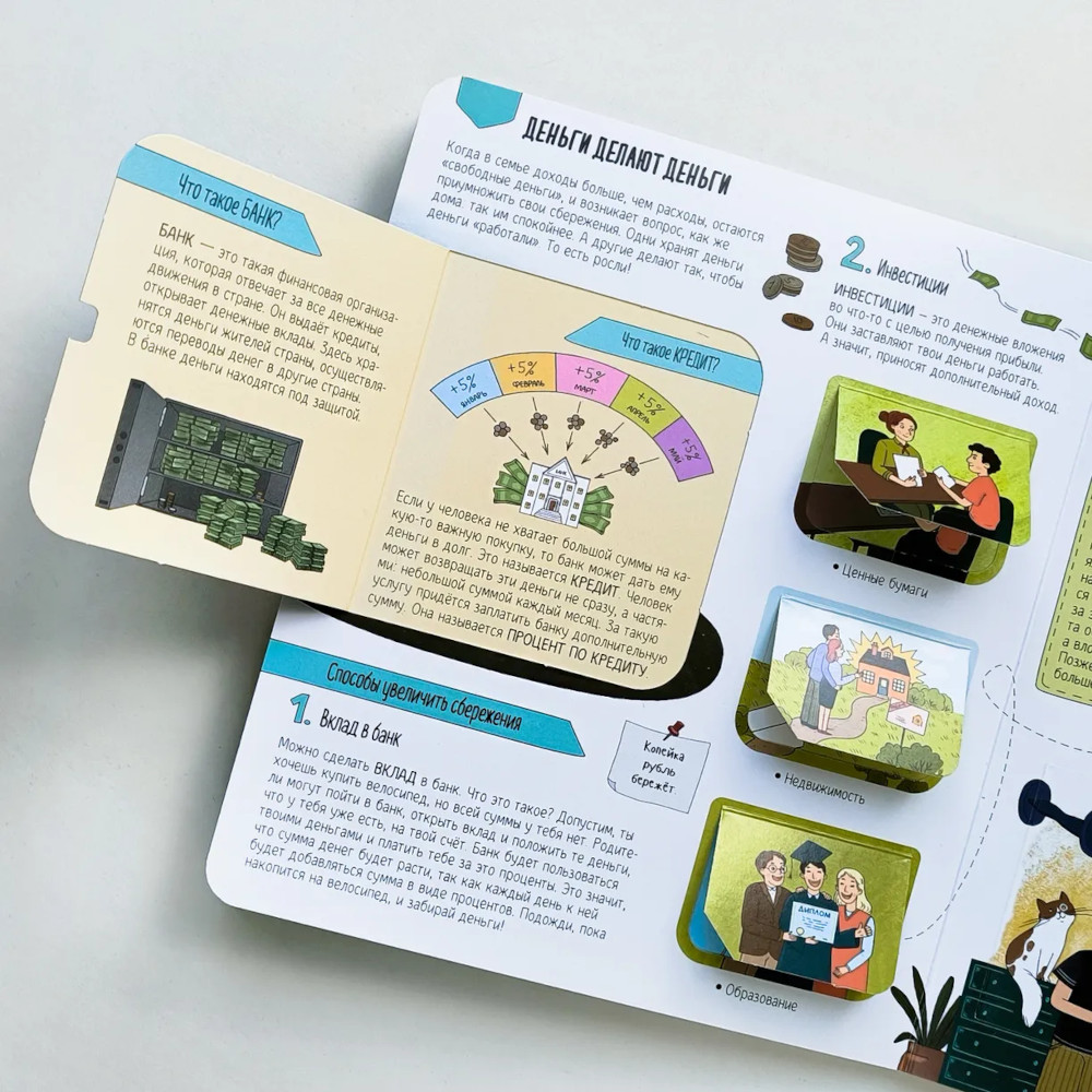 Книжка с окошками «Откуда берутся деньги?» - первый гид для малыша по финансовой грамотности. Она поможет ребёнку понять, что такое деньги и для чего они нужны, узнать о доходах и расходах, о том, что такое банк и как правильно расходовать карманные деньги. В книге 45 окошек с интересными фактами, раскрывающими и дополняющими темы. В этой книге мы постарались в доступной форме рассказать, как финансовая грамотность важна для воспитания успешного человека. Книжка игрушка с множеством открывающихся окошек будет интересна мальчикам и девочкам. Книги для детей предназначены для развития речи и памяти, внимания и усидчивости. Энциклопедия для детей отлично подойдет в качестве обучающего пособия для занятий юных финансистов в детском саду или младших классах школы. Финансовый ликбез для детей. Читайте книжку вместе с вашим ребенком - проводите время с пользой. Книга выполнена из мелованного картона с ламинированной обложкой. Энциклопедия приведет в восторг любого ребенка дошкольного и младшего школьного возраста.| Издательство | Аль Пако |