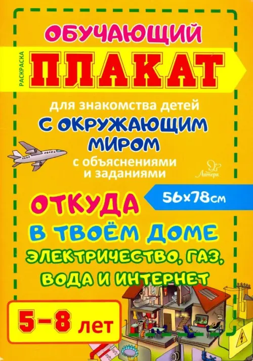 Откуда в твоем доме электричество, газ, вода и интернет. Обучающий плакат-раскраска для детей 5-8 л.