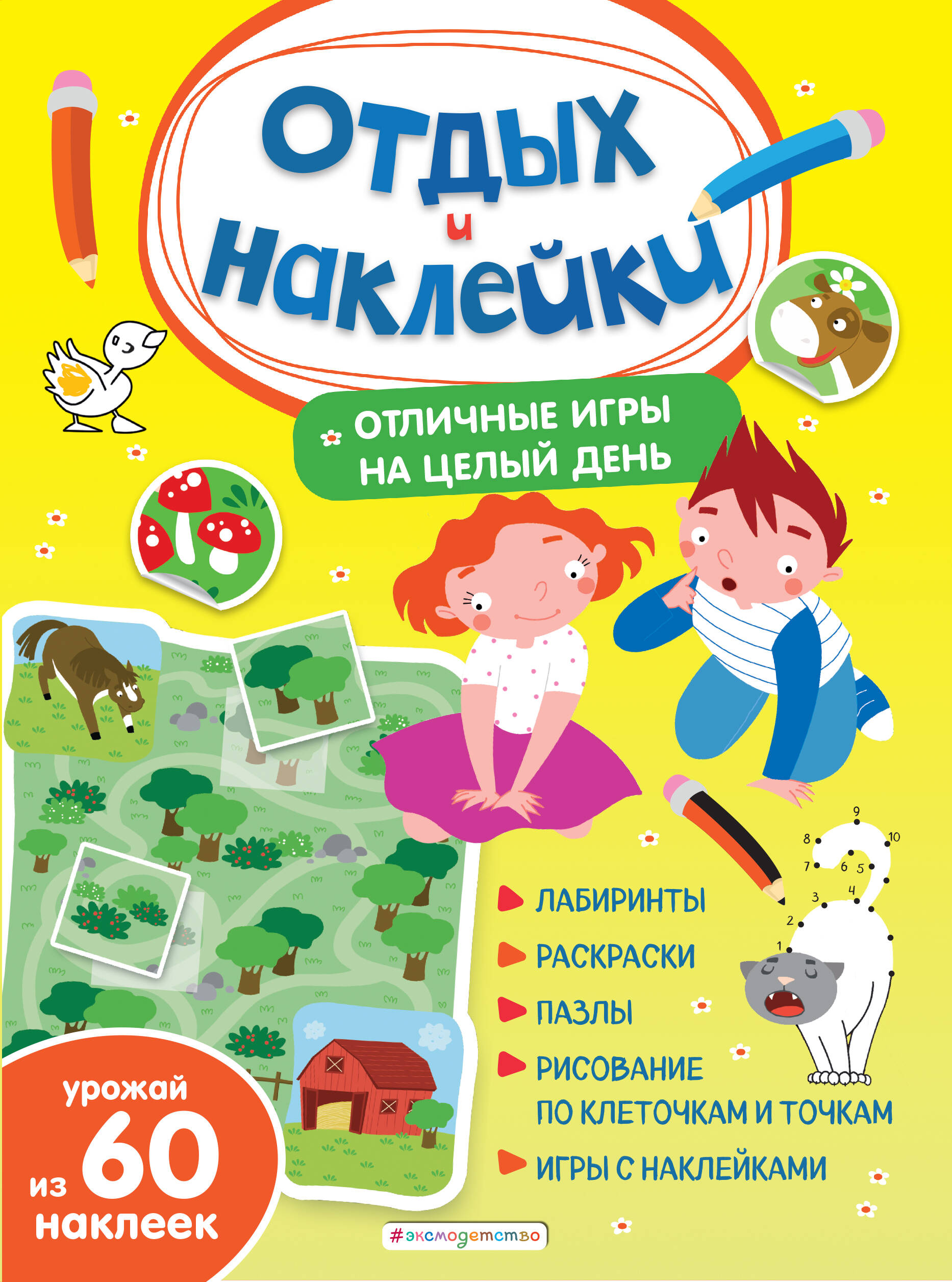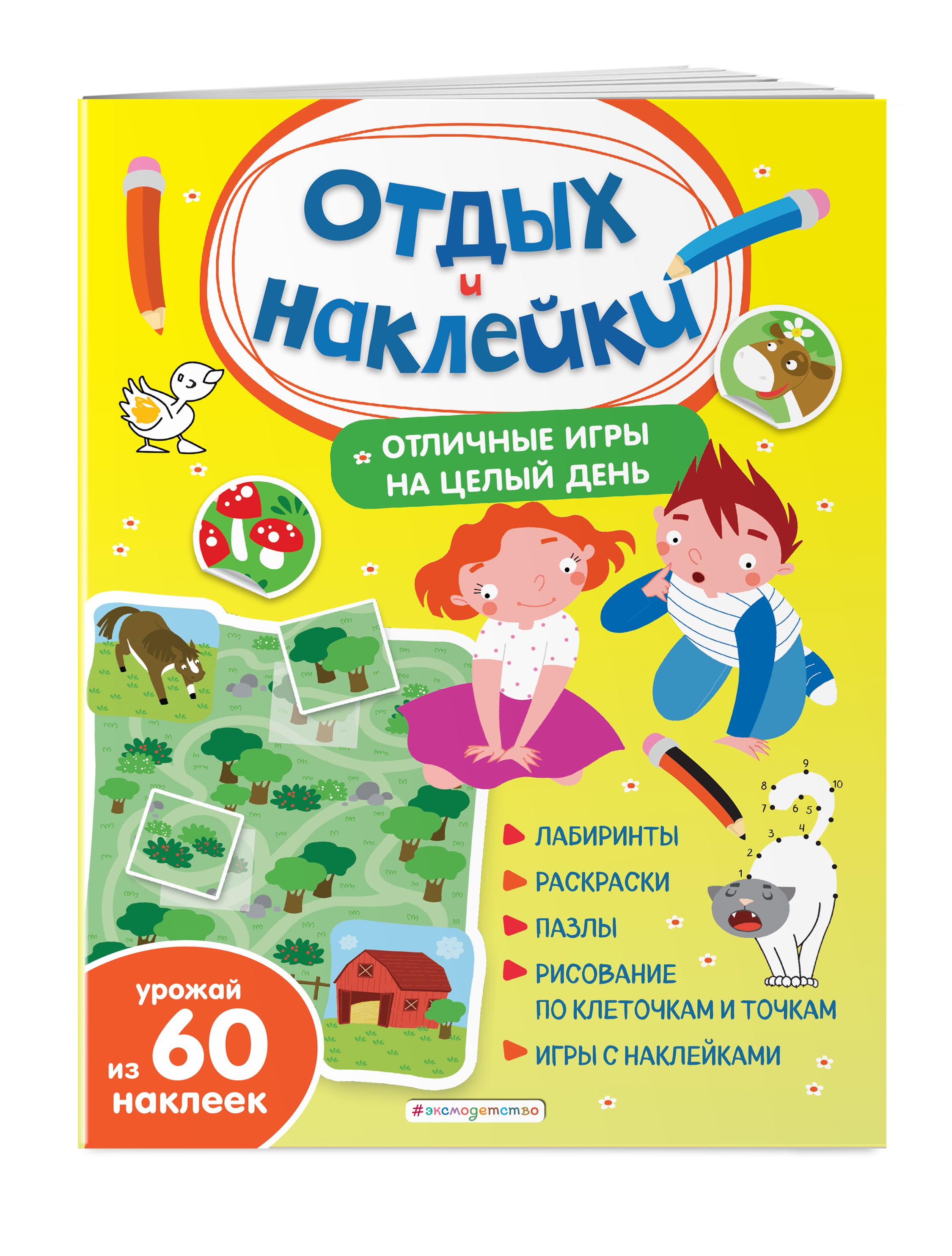 Не знаете, что бы придумать, чтобы ребёнок отлично провёл время? Перед вами целая коллекция отличных головоломок - солнечных, деревенских и с весёлыми дачниками и очаровательными животными! Это отличная тренировка памяти, моторики, развитие логического мышления и просто много-много творчества. А еще целый урожай наклеек, которые пригодятся в заданиях. Пусть ваш ребёнок проведёт увлекательные часы: рисует по клеточкам и точкам, раскрашивает, фантазирует и собирает пазлы из наклеек. А какие здесь классные лабиринты! Обещаем - это не те скучные головоломки, от которых вы устали! Осталось лишь выбрать задание под настроение - и вперёд, отдыхать, играть, наклеивать!| Издательство | Эксмо |