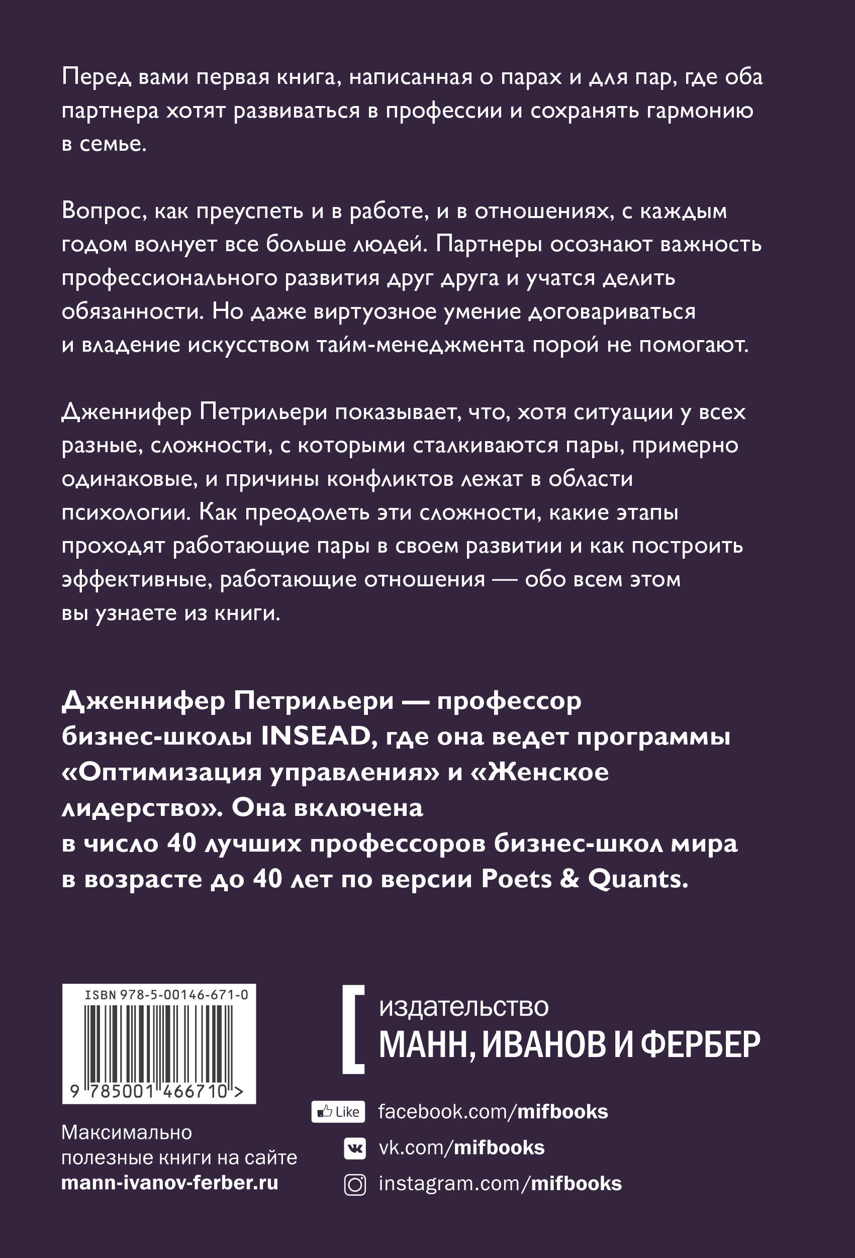 Книга для работающих пар -- где партнеры хотят развиваться в профессии, и при этом понимают, что нужно работать над отношениями. Поможет реализовать себя в карьере и построить гармоничную семью.