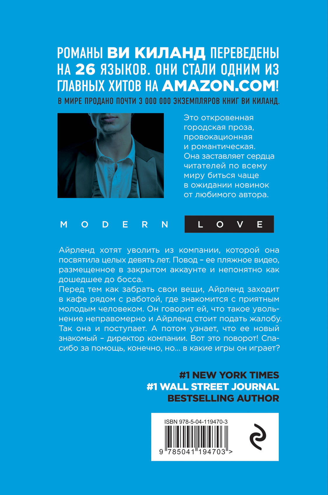 «Роман на работе - табу? Если вам это доставляет удовольствие, даруйте себе индульгенцию». - Cosmopolitan (US) Айрленд хотят уволить из компании, которой она посвятила целых девять лет. Повод - ее пляжное видео, размещенное в ЗАКРЫТОМ аккаунте и непонятно как дошедшее до босса. Перед тем как забрать свои вещи, Айрленд заходит в кафе рядом с работой, где знакомится с приятным молодым человеком. Он говорит ей, что такое увольнение неправомерно и Айрленд стоит подать жалобу. Так она и поступает. А потом узнает, что ее новый знакомый - директор компании. Вот это поворот. Спасибо за помощь, конечно, но… в какие игры он играет?