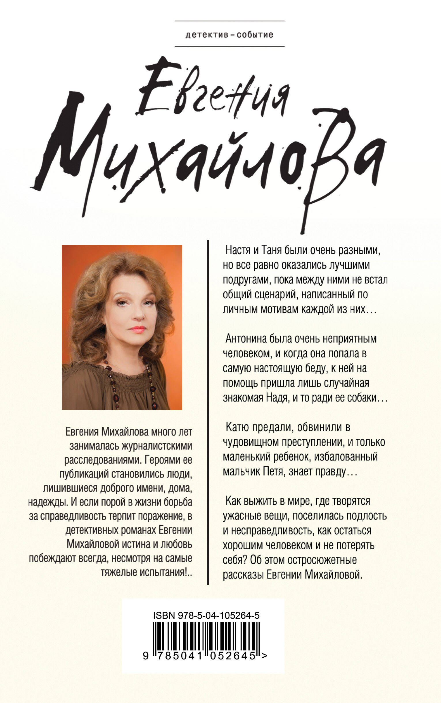 Евгения Михайлова много лет занималась журналистскими расследованиями. Героями ее публикаций становились люди, лишившиеся доброго имени, дома, надежды. И если порой в жизни борьба за справедливость терпит поражение, в детективных романах Евгении Михайловой истина и любовь побеждают всегда, несмотря на самые тяжелые испытания.