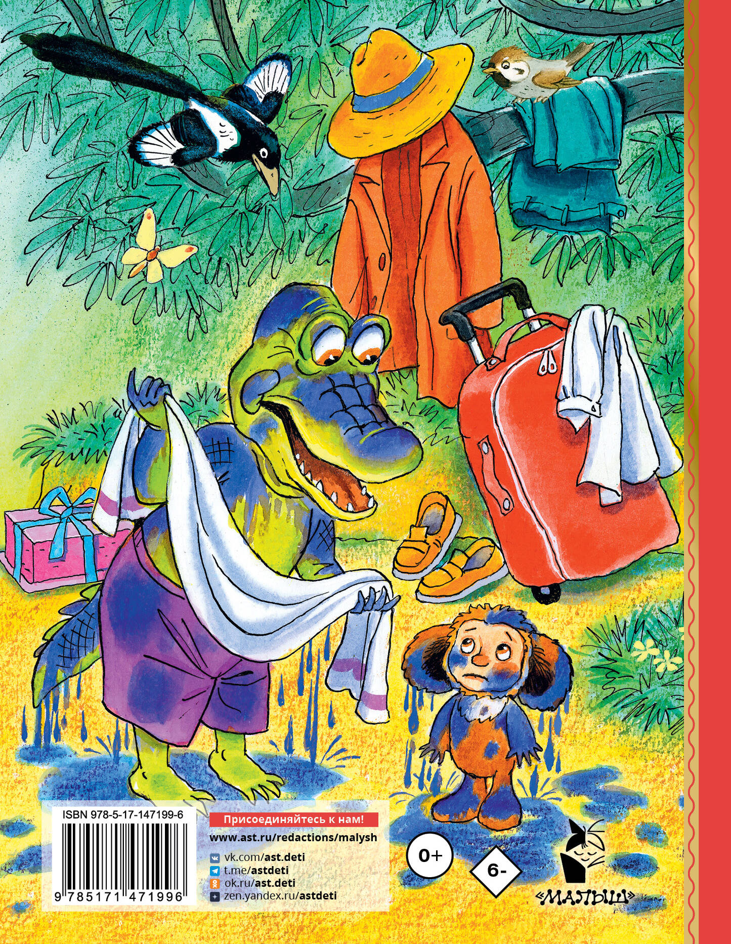 По повести «Отпуск крокодила Гены» был снят мультфильм, который назывался «Шапокляк». Почему так получилось? Потому что главная героиня в нём, главный борец за чистоту природы -именно она, бабушка Шапокляк. Не может быть, скажут читатели. Чтобы старуха Шапокляк поддержала добрые дела, за которые взялись Гена и Чебурашка - да никогда! Она ведь любит делать злы. Но так уж вышло, что она первая начала бороться с туристами-браконьерами. Правда, тоже из чистой вредности. Впервые новые иллюстрации известных художников С. Бордюга и Н. Трепенок.| Издательство | ИЗДАТЕЛЬСТВО "АСТ" |