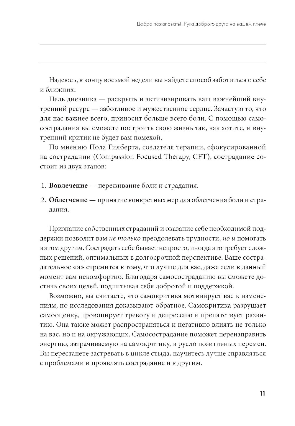 Комплект содержит книги. «Отпусти внутреннего критика» Многие сравнивают свои достижения с чужими, что часто приводит к самобичеванию. Нам кажется, что если как следует отругаем себя за реальные и мнимые ошибки, то что-то изменится, однако в результате мы чувствуем себя нервными и измотанными. Клинический психолог Дайана Хилл считает, что эффективнее относиться к себе с пониманием и добротой, особенно в трудные моменты. Она предлагает техники из терапии, сфокусированной на сострадании, а также принятии и ответственности. Развивая бережное отношение к себе, мы учимся принимать себя со всеми особенностями, проявлять сочувствие в сложных ситуациях и брать ответственность за собственные решения. Чтобы сделать сострадание частью повседневной жизни, вам потребуется всего несколько минут в день. За восемь недель практики вы научитесь расцепляться с внутренним критиком, прощать себя и почувствуете любовь к себе, о которой, возможно, и не подозревали. «Понимая себя: взгляд психотерапевта» Что такое кризис и что такое стресс? Как они зарождаются и можно ли их избежать? Что такое норма и патология - можно ли провести между ними четкую границу? Как помочь человеку оставаться самим собой? Этим и многим другим вопросам посвящена книга известного психотерапевта В.Е. Кагана - это описание нашей жизни и размышления над ней.| Издательство | Альпина Паблишер |