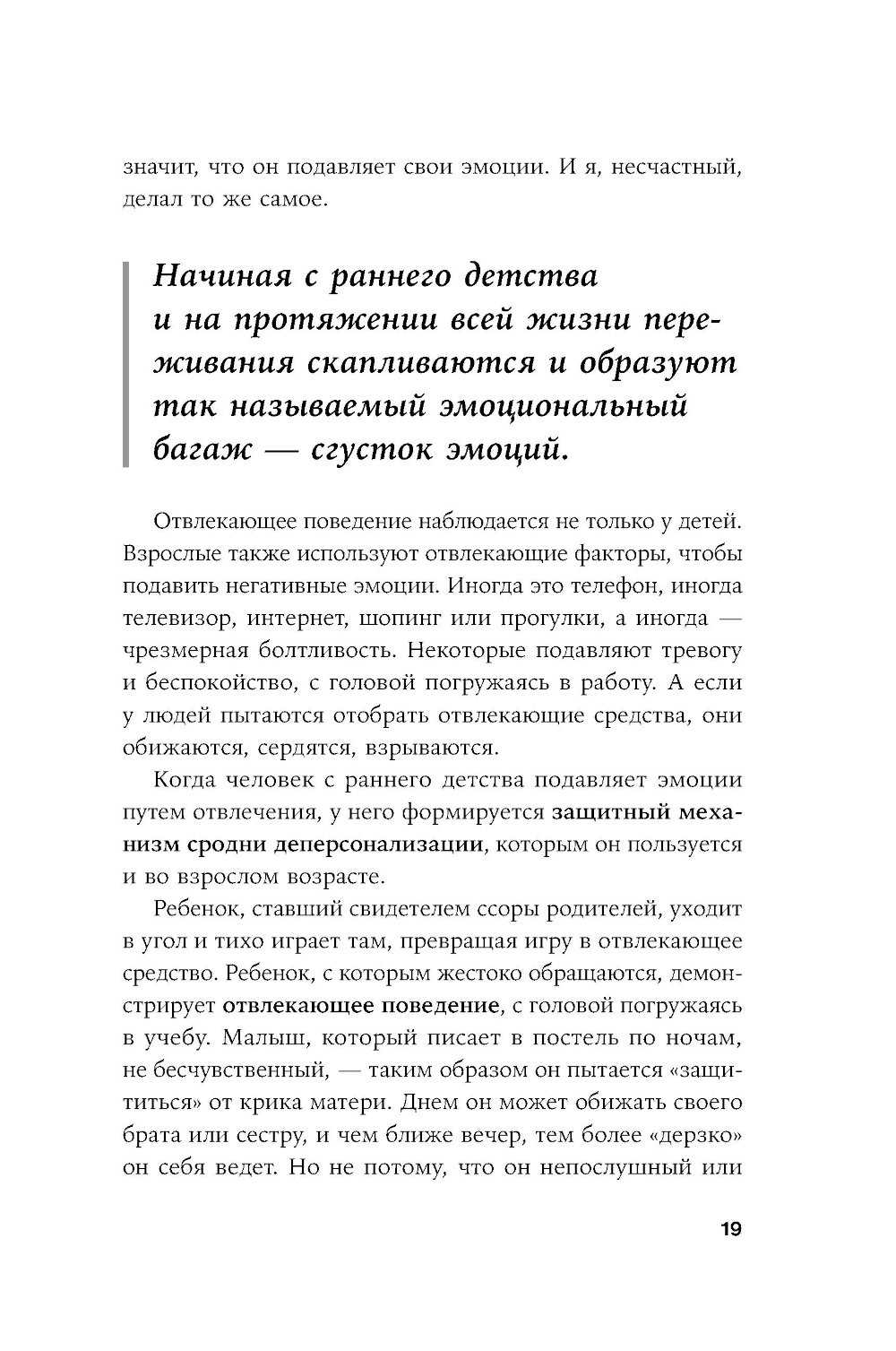 Подавленные эмоции не исчезают, а продолжают влиять на нас на подсознательном уровне, проявляясь в резких вспышках агрессии, внутреннем напряжении, постоянном ощущении тревоги, ухудшении самооценки и даже проблемах с сердцем. Адем Гюнеш, известный психолог и эксперт в области детского развития, предлагает практический подход к решению проблемы подавленных эмоций. Автор разработал методику, которая помогла ему самому справиться с тяжелой формой аэрофобии, а тысячам его пациентов - значительно улучшить качество жизни. Книга включает множество реальных историй людей, которые смогли справиться с тревогами, гневом и неуверенностью. Подробно описанная практическая программа поможет каждому читателю за шесть недель освободиться от эмоциональных блоков и обрести внутреннюю гармонию.| Издательство | Альпина Паблишер |