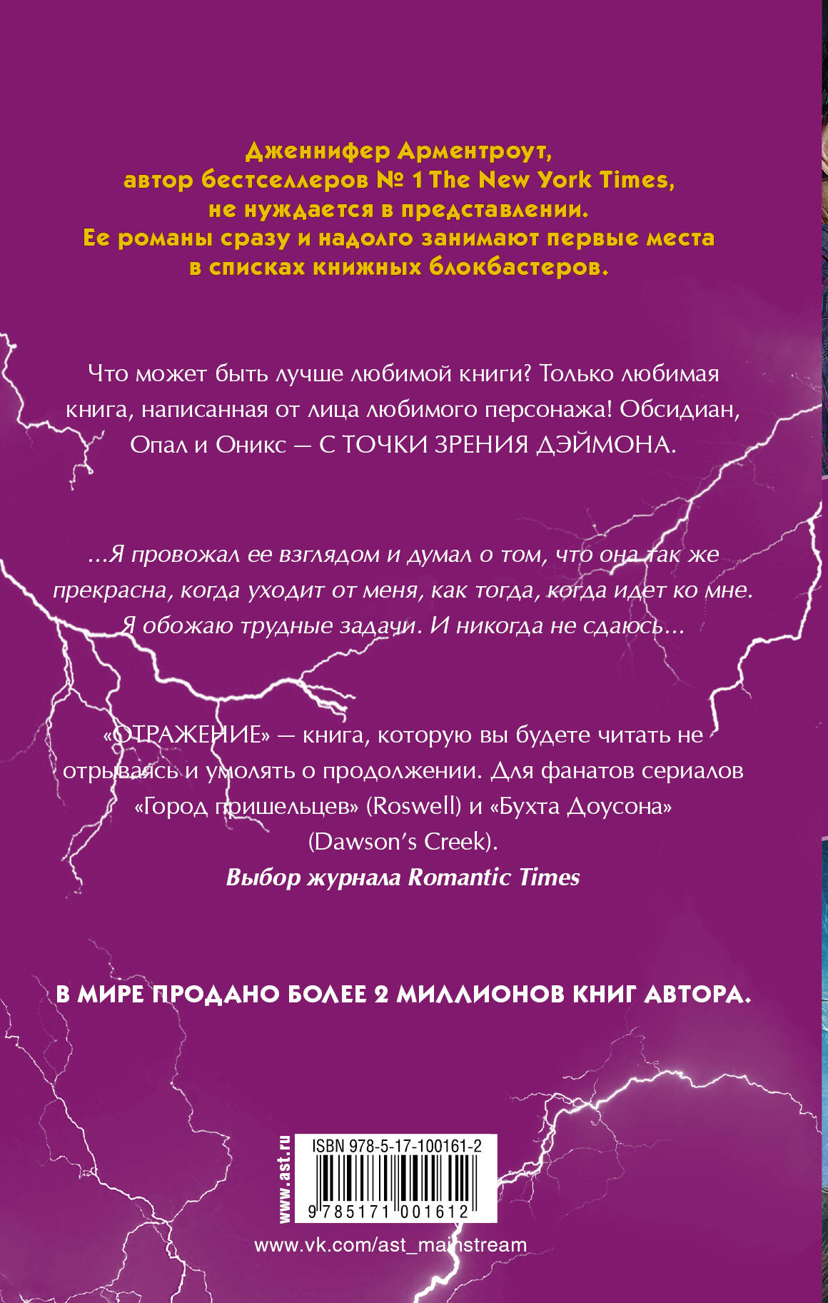 Каждая книга Дж. Арментроут - это мегабестселлер или блокбастер среди книг! Дженнифер Арментроут, автор бестселлеров № 1 The New York Times, не нуждается в представлении. Ее романы сразу и надолго занимают первые места в списках книжных блокбастеров. Что может быть лучше любимой книги? Только любимая книга, написанная от лица любимого персонажа! Обсидиан, Опал и Оникс - С ТОЧКИ ЗРЕНИЯ ДЭЙМОНА. «…Я провожал ее взглядом и думал о том, что она так же прекрасна, когда уходит от меня, как тогда, когда идет ко мне. Я обожаю трудные задачи. И никогда не сдаюсь…» «ОТРАЖЕНИЕ» - книга, которую вы будете читать не отрываясь и умолять о продолжении. Для фанатов сериалов «Город пришельцев» (Roswell) и «Бухта Доусона» (Dawson's Creek). Выбор журнала Romantic Times. В мире продано более 2 миллионов книг автора.| Издательство | Издательство "АСТ" |