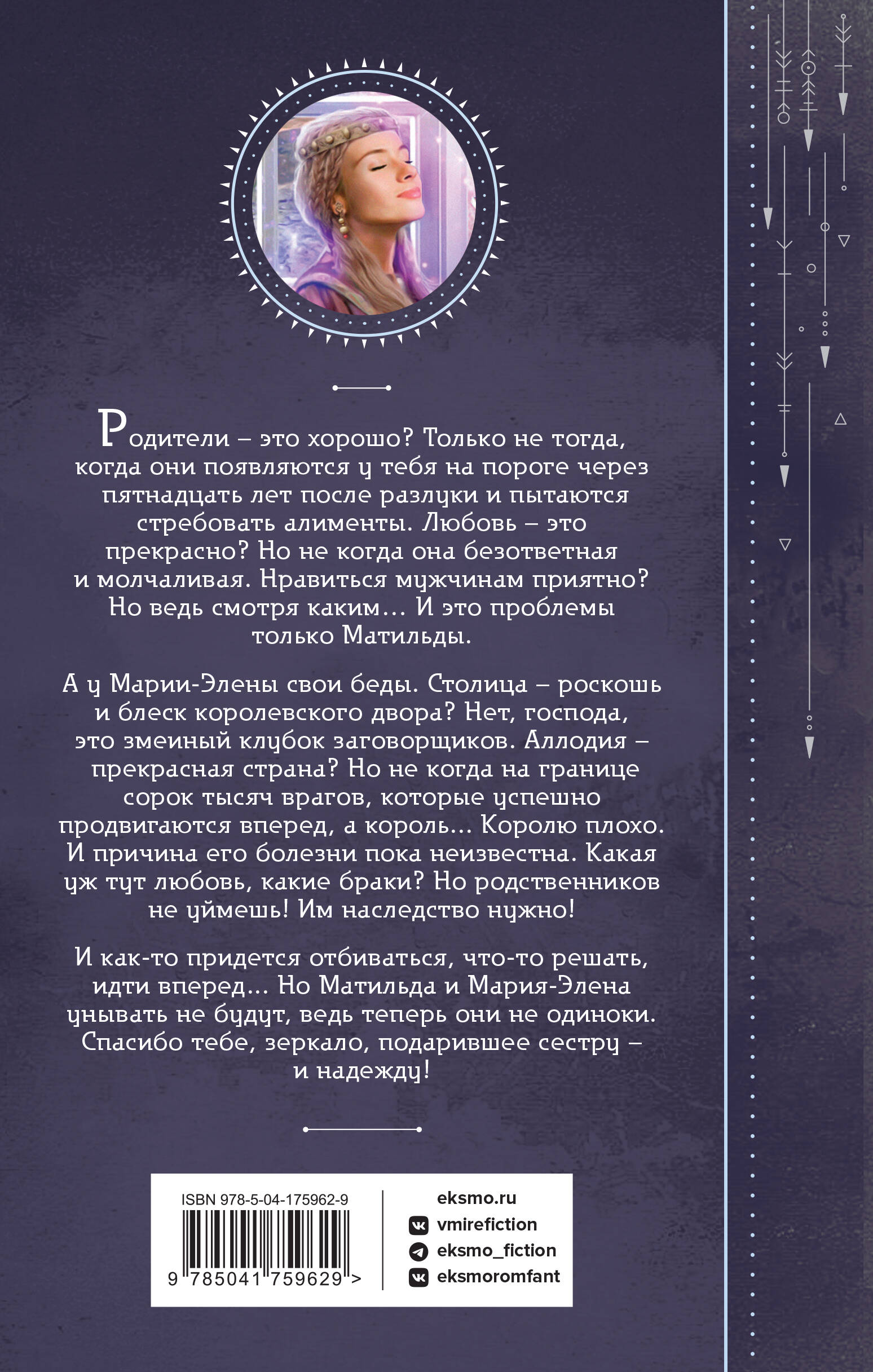 Родители - это хорошо? Только не тогда, когда они появляются у тебя на пороге через пятнадцать лет после разлуки и пытаются стребовать алименты. Любовь - это прекрасно? Но не когда она безответная и молчаливая. Нравиться мужчинам приятно? Но ведь смотря каким… И это проблемы только Матильды. А у Марии-Элены свои беды. Столица - роскошь и блеск королевского двора? Нет, господа, это змеиный клубок заговорщиков. Аллодия - прекрасная страна? Но не когда на границе сорок тысяч врагов, которые успешно продвигаются вперед, а король... Королю плохо. И причина его болезни пока неизвестна. Какая уж тут любовь, какие браки? Но родственников не уймешь! Им наследство нужно! И как-то придется отбиваться, что-то решать, идти вперед... Но Матильда и Мария-Элена унывать не будут, ведь теперь они не одиноки. Спасибо тебе, зеркало, подарившее сестру - и надежду! 1. Переиздание одного из культовых циклов Галины Гончаровой. 2. История, полная света и надежды. 3. Две судьбы, две женщины, преодолевающие тяготы жизни. 4. Сестринская привязанность и крепкая романтическая любовь. 5. Новое оформление - возможность собрать коллекцию!| Издательство | ООО "Издательство "Эксмо" |
