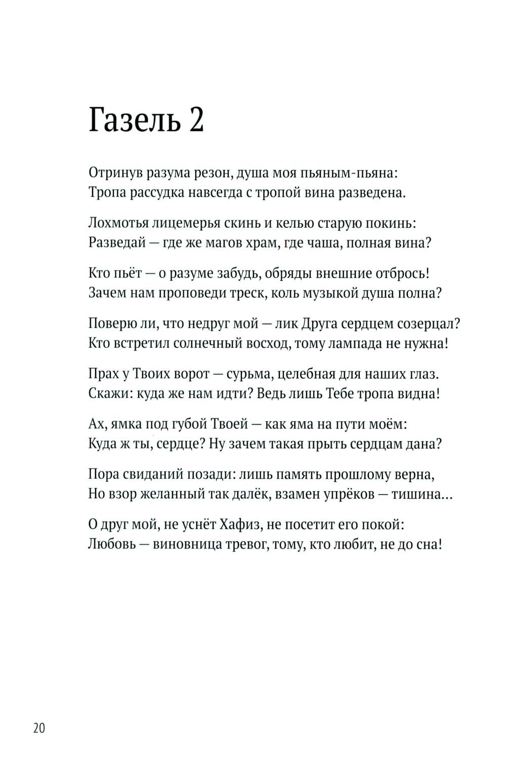 Великий персидский поэт XIV века Хафиз Ширази (из Шираза) - глубокий мыслитель- мистик. В наши дни становятся особенно актуальными поднятые им вопросы о сущности и соотношении Божественного и человеческого начал, о любви как основе сосуществования людей, народов и целых цивилизаций. Хафиз учит, что для нас как бессмертных духов жизнь на Земле обладает безмерной ценностью. Смысл жизни - в поисках Творца, раскрывающегося в человеке - носителе светлого разума и высокого чувства. Бог предстает в стихах Хафиза в виде кравчего, напояющего поэта мистическим «вином» - переживанием полноты жизни, экстаза духовного восхождения к Высшей Истине… В настоящем переводе, сопровождающемся подробными комментариями, газели Хафиза издаются впервые. Для широкого круга читателей.| Издательство | Теревинф |