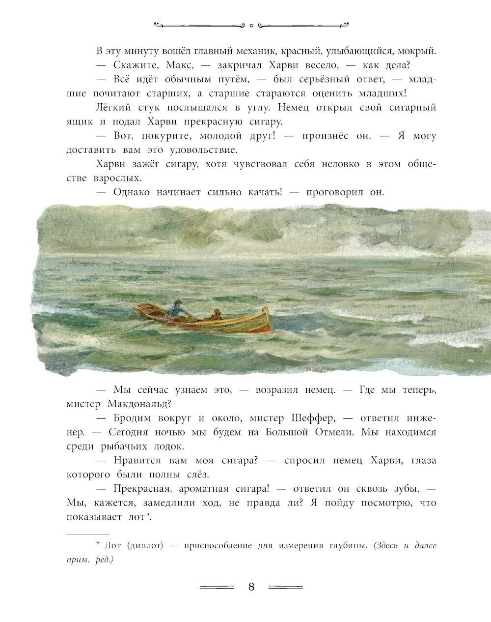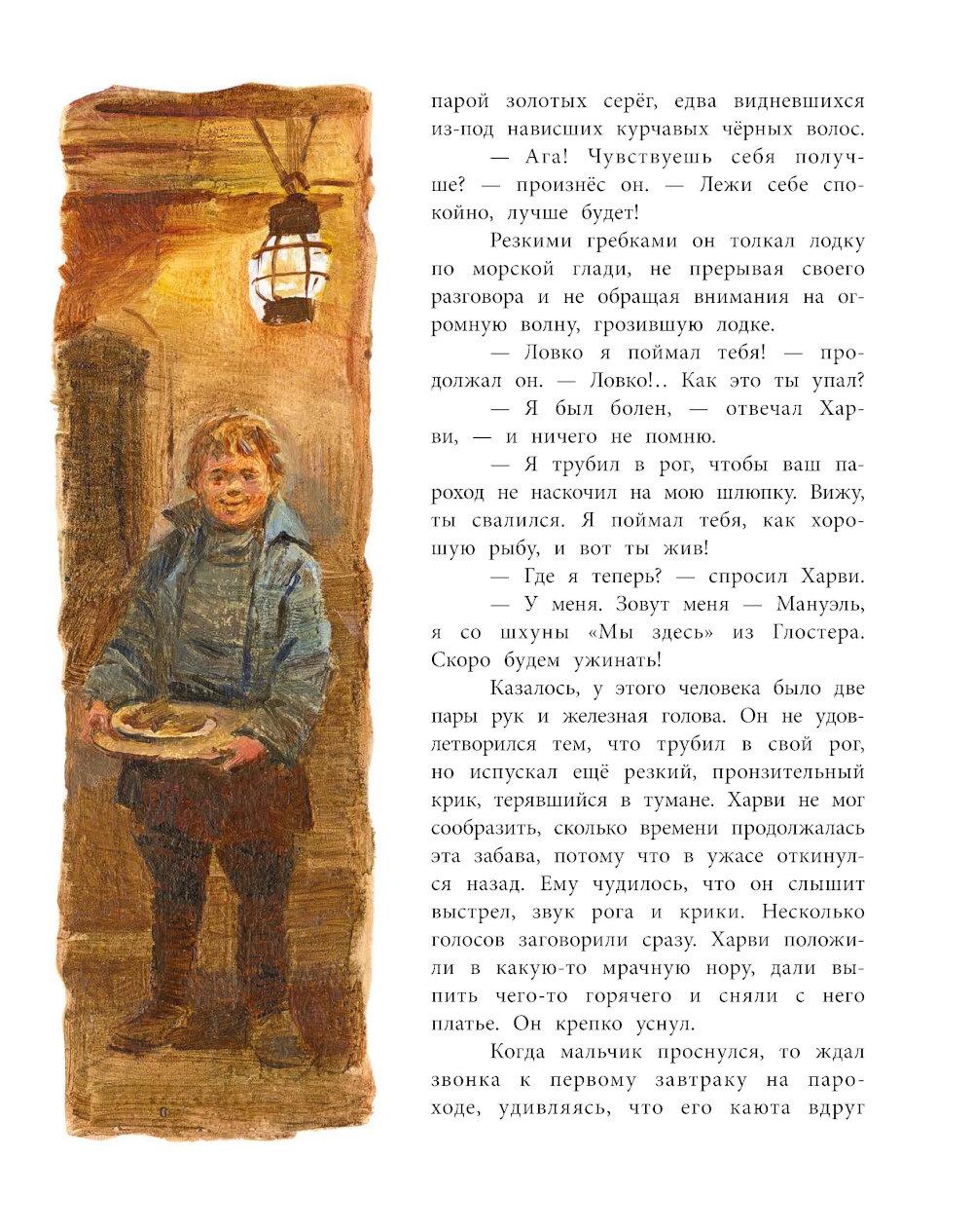 Еще недавно пятнадцатилетний сын миллионера Харви Чейни скучал в гостиной большого парохода. И вот уже он чинит паруса, драит шлюпки и натирает солью блестящие бока трески, пойманной собственными руками. Если бы не моряки со шхуны «Мы здесь», вероятно, Харви стал бы совсем другим человеком. Но как мальчик оказался на скромной рыбацкой шхуне? Уж точно не ради жалованья в десять с половиной долларов в месяц! Роман «Отважные капитаны» можно с полным правом назвать детской классикой. Он входит в списки книг, рекомендованных для внеклассного чтения. Отличный подарок для мальчика, для школьника, который обожает книжки про корабли, про море и про путешествия, про морские приключения, про испытания силы духа, характера и про взросление.| Издательство | Изд. Лабиринт Пресс |