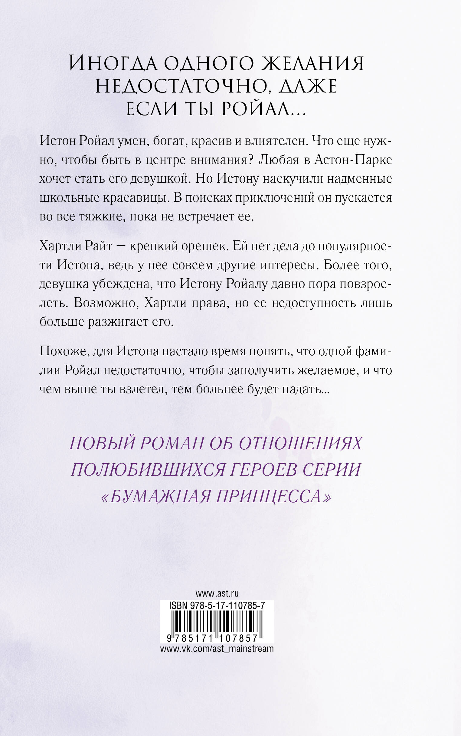 - От автора бестселлеров New York Times! - Романтический YA-роман для поклонников Эль Кеннеди и Пенелопы Дуглас. - В России продано более 200 000 экземпляров серии! - Главный герой романа, плейбой Истон Ройал, попробует завоевать девушку, которая его презирает. - Четвёртая книга цикла «Бумажная принцесса» - серии книг про пятерых сыновей семейства Ройал. Первый том «Бумажная принцесса» продержался в списке бестселлеров The New York Times 15 недель и был номинирован на премию портала Goodreads за лучший романтический роман 2016 года.| Издательство | ИЗДАТЕЛЬСТВО "АСТ" |