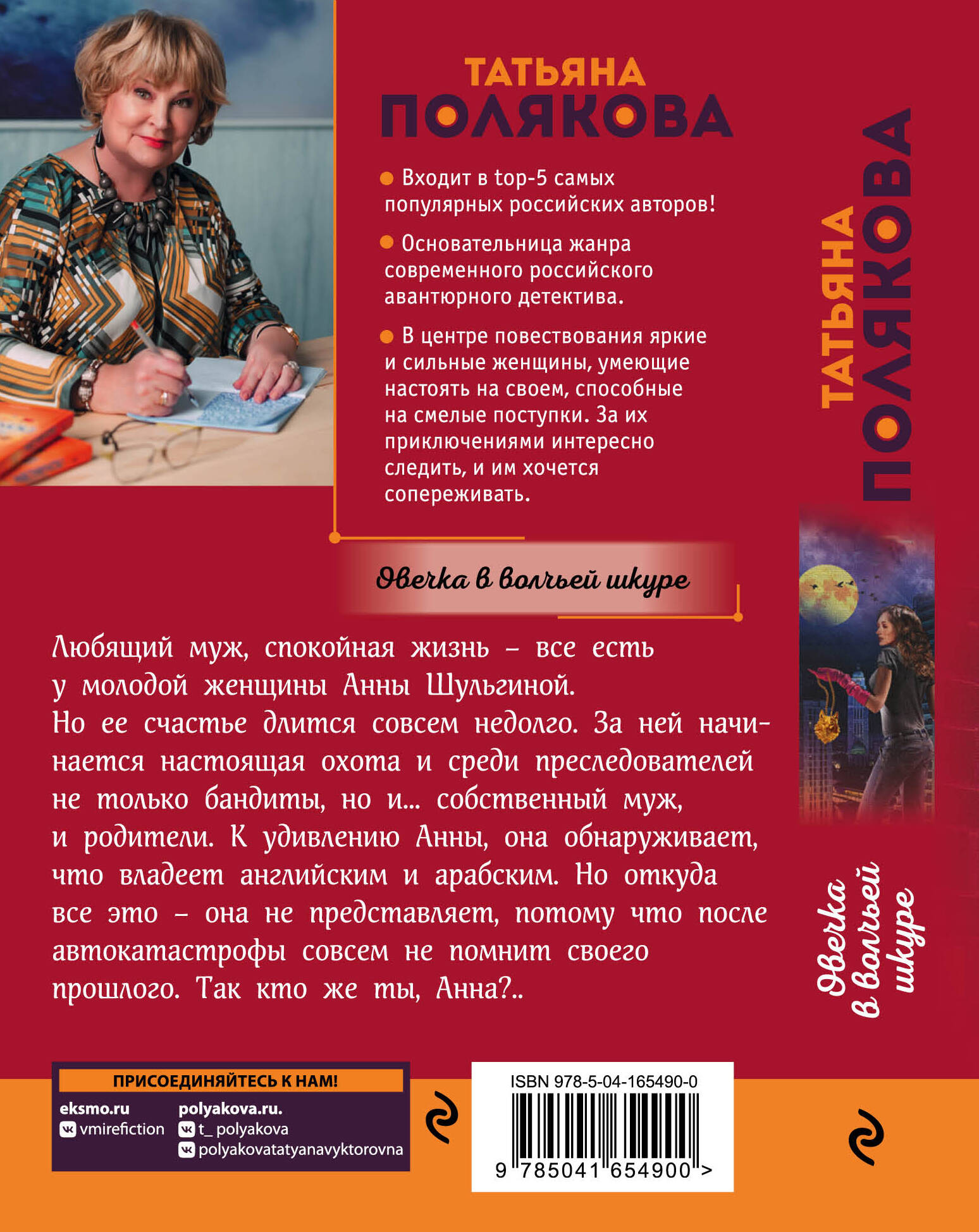 Любящий муж, спокойная жизнь - все есть у молодой женщины Анны Шульгиной. Но ее счастье длится совсем недолго. За ней начинается настоящая охота, и среди преследователей не только бандиты, но и... собственный муж, и родители. К удивлению Анны, она обнаруживает, что владеет английским и арабским. Но откуда все это - она не представляет, потому что после автокатастрофы совсем не помнит своего прошлого. Так кто же ты, Анна?.. Татьяна Полякова - один из самых популярных российских писателей в жанре детектива. За время писательской карьеры из-под ее пера вышло более 85 книг общим тиражом более 36 миллионов экземпляров. По свидетельствам читателей, романы Татьяны Поляковой - это «захватывающий сюжет и непредсказуемая развязка, обаятельные герои и невероятные приключения, легкий стиль и яркие диалоги».| Издательство | Эксмо |