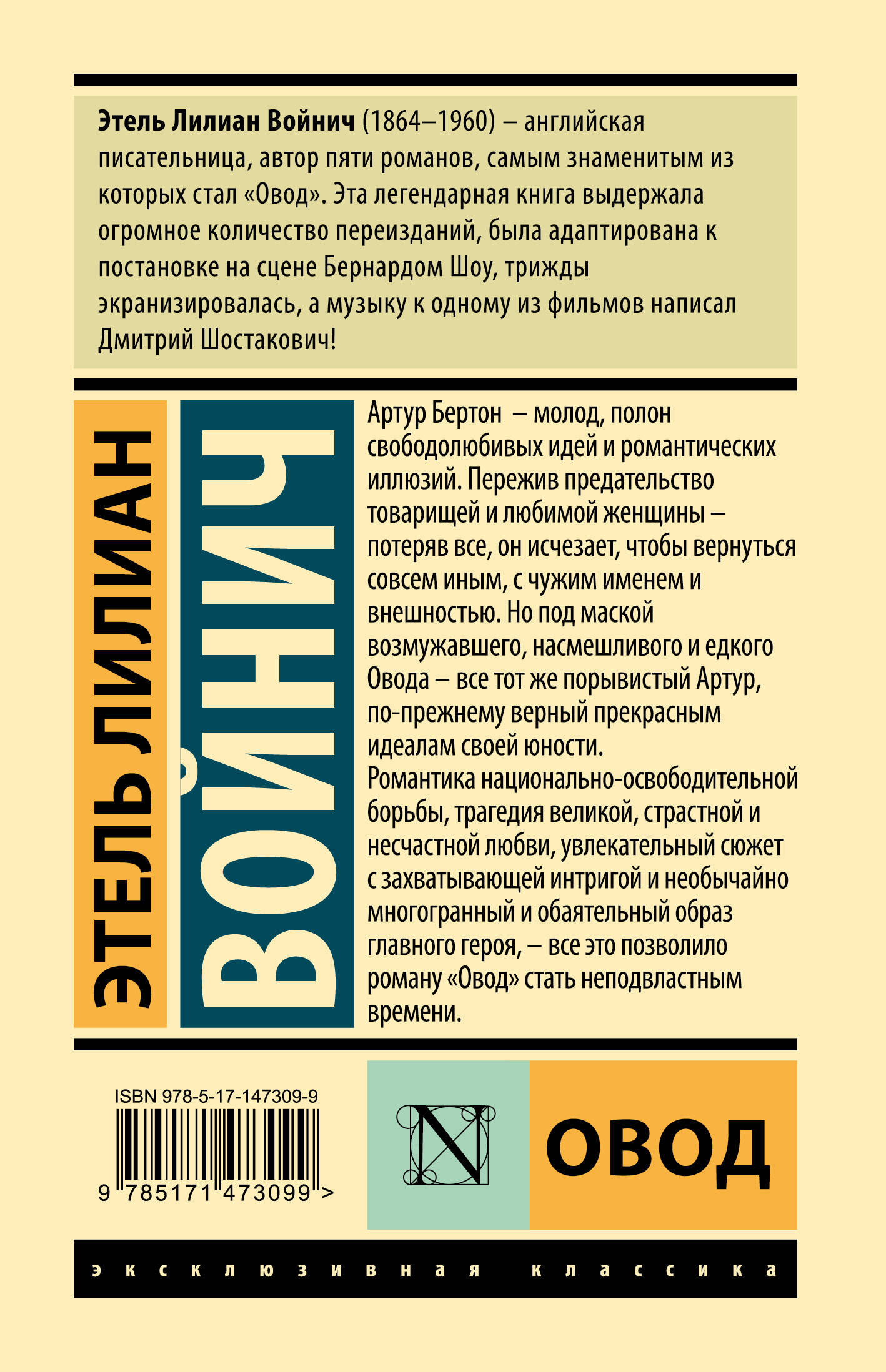 Артур Бертон - молод, полон свободолюбивых идей и романтических иллюзий. Пережив предательство товарищей и любимой женщины - потеряв все, он исчезает, чтобы вернуться совсем иным, с чужим именем и внешностью. Но под маской возмужавшего, насмешливого и едкого Овода - все тот же порывистый Артур, по-прежнему верный прекрасным идеалам своей юности. Романтика национально-освободительной борьбы, трагедия великой, страстной и несчастной любви, увлекательный сюжет с захватывающей интригой и необычайно многогранный и обаятельный образ главного героя, - все это позволило роману "Овод" стать неподвластным времени.| Издательство | Издательство "АСТ" |