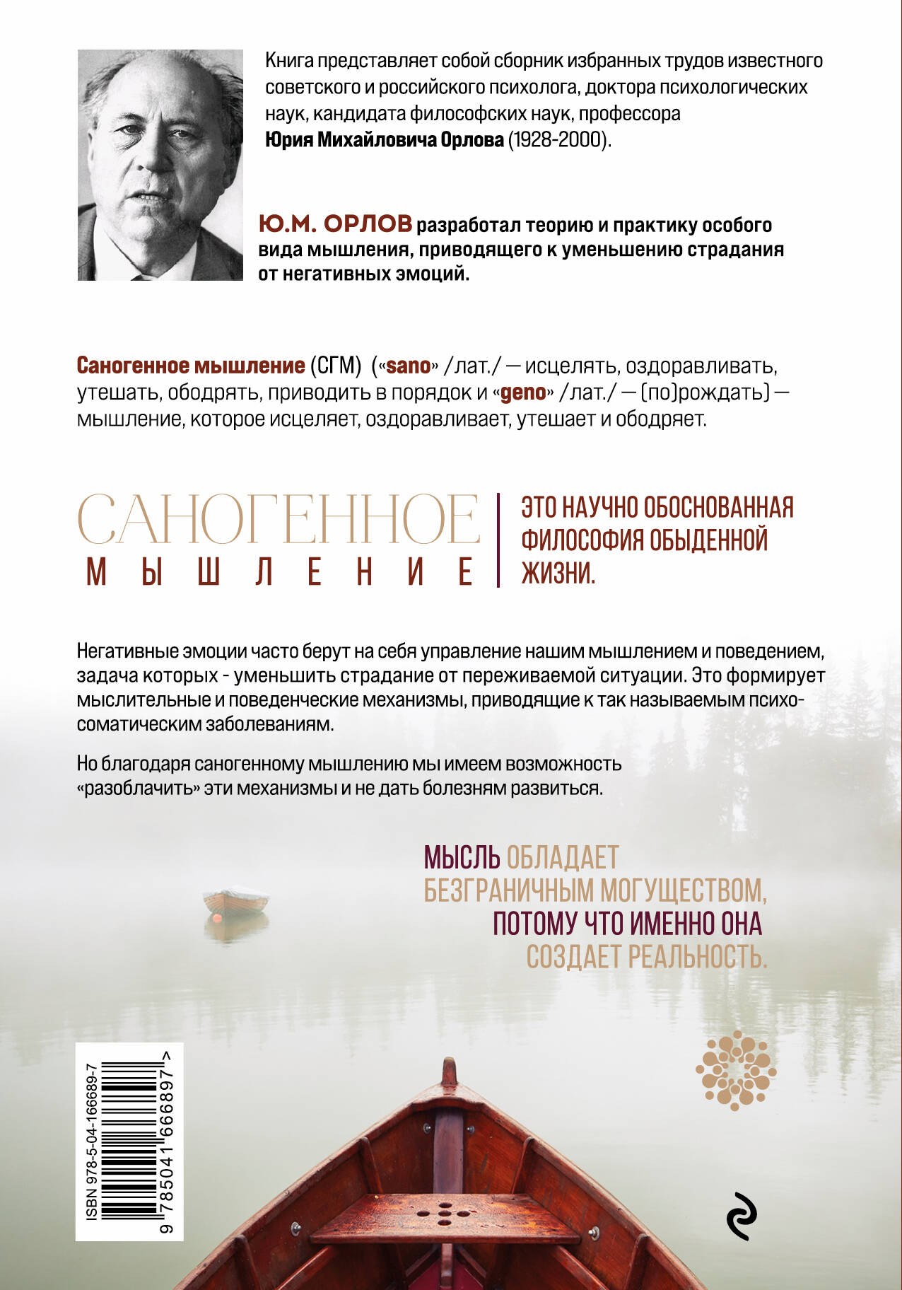 Как научиться переживать негативные эмоции без осложнений для здоровья? Нормально ли испытывать гнев, обиду, страх, вину? Негативные эмоции часто берут на себя управление нашим мышлением и поведением, и это неизбежно приводит к так называемым психосоматическим заболеваниям. Но благодаря саногенному мышлению мы имеем возможность «разоблачить» эти механизмы и не дать болезням развиться. Книга представляет собой сборник избранных трудов известного советского и российского психолога, доктора психологических наук, кандидата философских наук, профессора Юрия Михайловича Орлова, который разработал теорию и практику особого вида мышления, приводящего к уменьшению страдания от негативных эмоций.