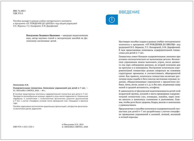 Оздоровительная гимнастика.Комплексы упражнений (ФГОС) (0+)| Автор/составитель | Пензулаева Л.И. |