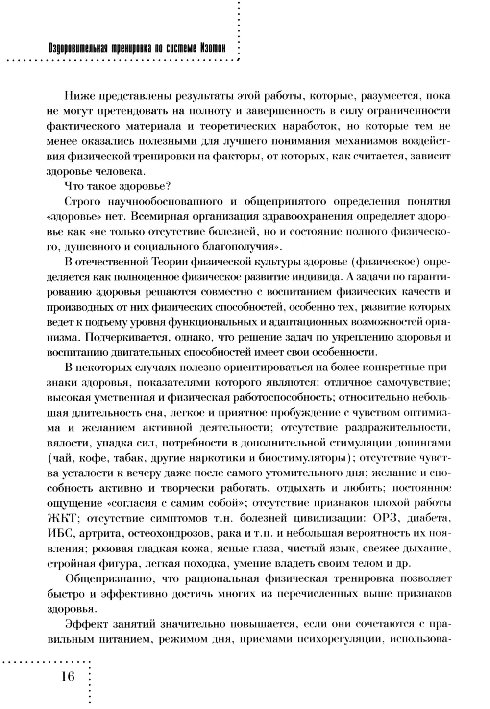 В книге рассказывается о системе оздоровительной тренировки ИЗОТОН, созданной в 1992 г. в России в Проблемной научно-исследовательской лаборатории Центрального института физической культуры (ныне РГУФК) (приоритет заявки на патент В.Н. Селуянона № 92-011.380/14057 К! I от 11.12.92). За прошедшие годы система была апробирована на практике. Ее физиологические и педагогические аспекты, а также эффективность подверглись многоплановому научному исследованию, на материале которого защищено 3 кандидатских и одна докторская диссертации, подтвердивших заявленные эффекты применения системы. Это позволяет авторам опубликовать ее основные теоретические и методические положения. Книга адресована специалистам в области оздоровительных технологий, студентам, магистрантам и аспирантам ИФК. а также «энтузиастам здорового образа жизни» для организации гамогтонтельных занятии.| Издательство | ТВТ Дивизион |