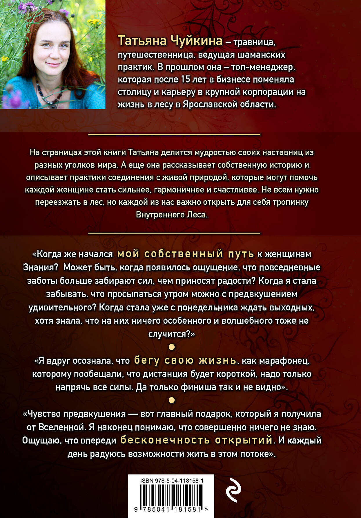 «Оживай! Мой путь к источнику силы. Уйти из офиса в лес, чтобы найти себя». Как осуществить мечту? Автора книги приглашали на стажировку в Google, но она выбрала леса Ярославской области. После 15 лет в бизнесе она поменяла столицу и карьеру в крупной корпорации на жизнь в лесу. В прошлом топ-менеджер, сегодня она - травница, путешественница и ведущая шаманских практик. Татьяна Чуйкина описывает собственный опыт и практики соединения с природой, которые помогут каждой женщине найти свой личный путь к счастью. Она рассказывает о встречах со своими наставницами - «женщинами силы» со всего мира - и делится их мудростью.| Издательство | ООО "Издательство "Эксмо" |