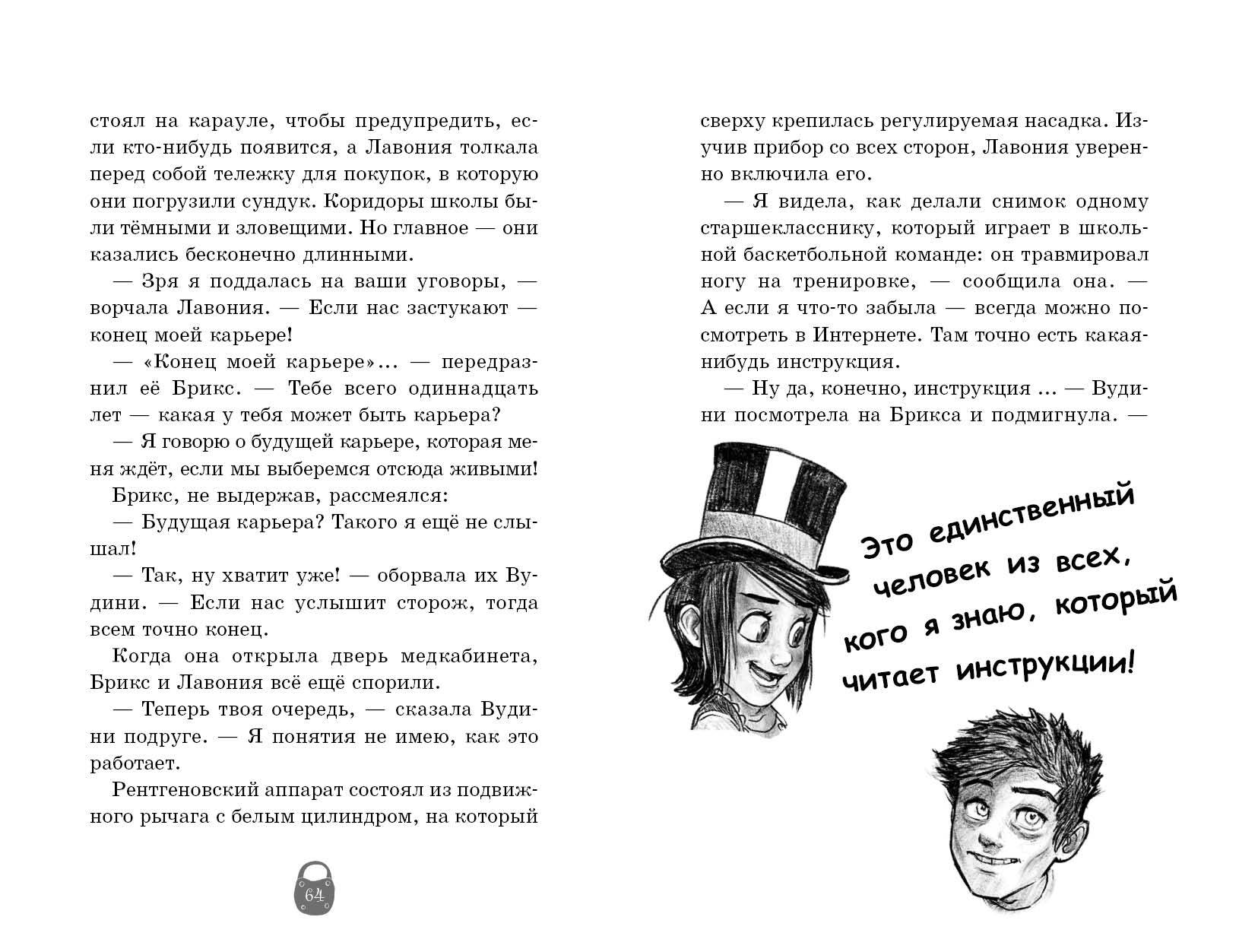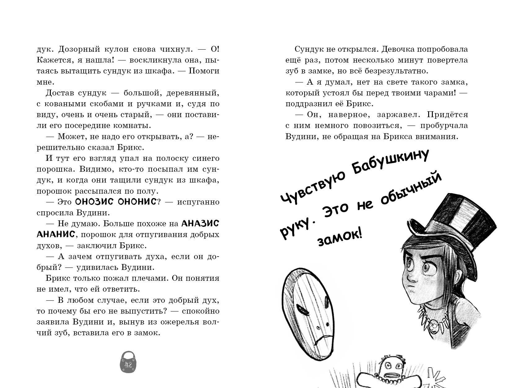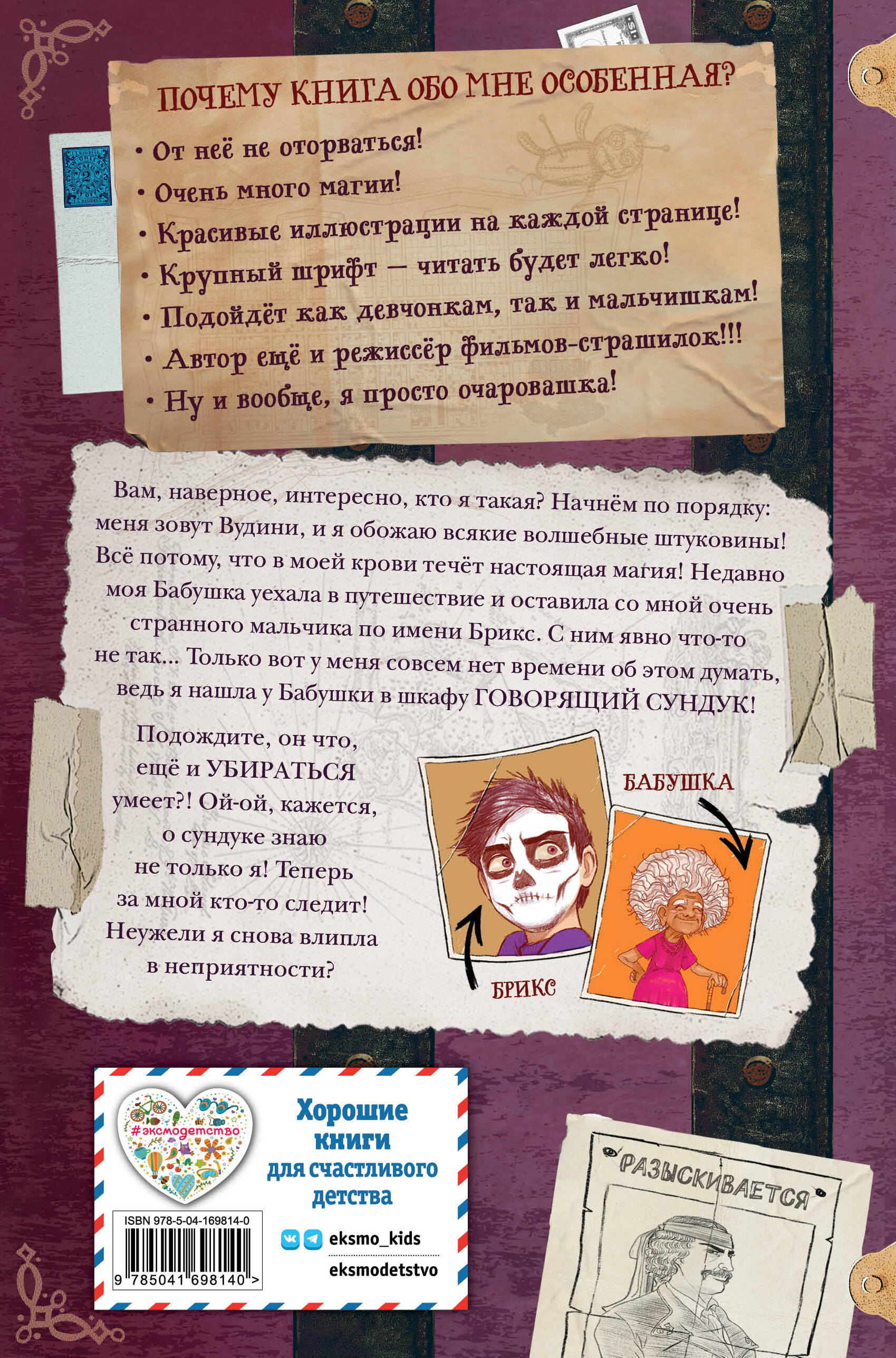 Вудини просто обожает всякие волшебные штуковины! Всё потому, что в её крови течёт настоящая магия! Недавно её Бабушка уехала в путешествие и оставила с ней очень странного мальчика по имени Брикс. С ним явно что-то не так... Только вот у Вудини совсем нет времени об этом думать, ведь она нашла у Бабушки в шкафу ГОВОРЯЩИЙ СУНДУК! Подождите, он что, ещё и УБИРАТЬСЯ умеет?! И, кажется, о сундуке знает не только Вудини! Теперь за ней кто-то следит! Неужели девочка снова влипла в неприятности? Причины купить эту книгу: • Захватывающий сюжет! • Очень много магии! • Красивые иллюстрации на КАЖДОЙ странице! • Понравится как девчонкам, так и мальчишкам! • Идеально для самостоятельного чтения!