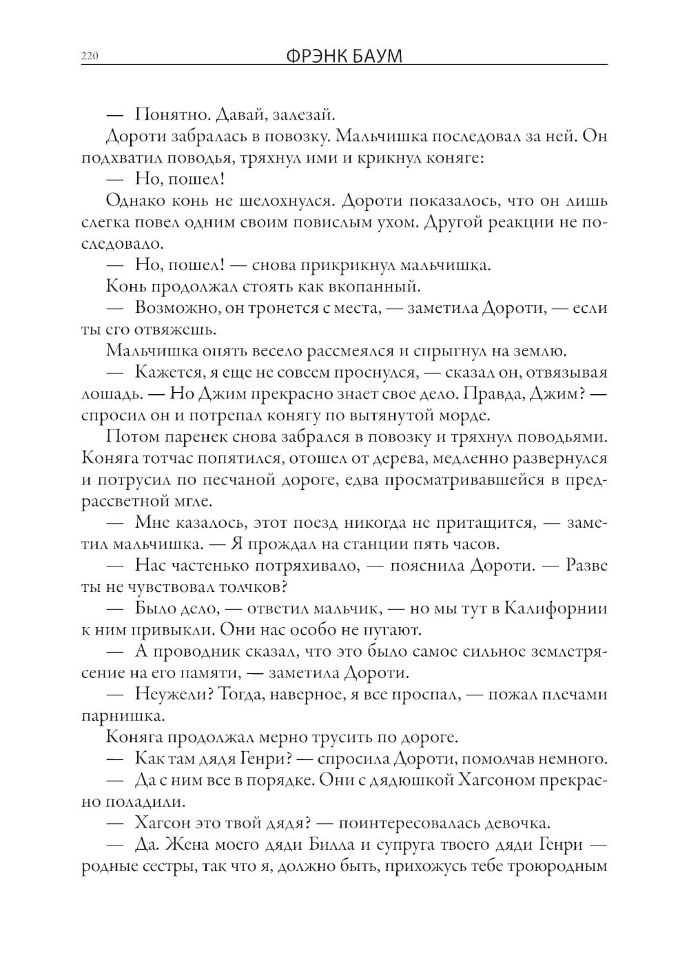 История американского писателя Фрэнка Баума, повествующая о Дороти. Пугале, Железном Дровосеке, Трусливом льве и стране Оз, стала в конце XIX века бестселлером. Баум делал все возможное, чтобы с его героями познакомилось как можно больше юных читателей - он работал над театральными постановками своей повести, рисовал комиксы для газет и журналов, где описывались новые приключения его героев. До начала своей литературной карьеры Франк зарабатывал на жизнь торгуя всякой всячиной в скромном магазинчике, который он открыл в одном из городков Дакоты. Успех первой книги подсказал Бауму - найденную им золотую жилу надо разрабатывать дальше. Вслед за первой повестью о стране Оз последовала вторая. В ней появились новые герои - Тыквоголовый Джек, Жук-Кувыркун, ожившие Козлы и другие персонажи. За второй книгой последовала третья. На ее страницах Дороти снова попадала в волшебную страну, населенную удивительными созданиями, и встречала своих старых добрых знакомых - Пугало, Железного Дровосека, Волшебника из страны Оз и многих других. В четвертой книге Баум отправил свою главную героиню в подземный мир, где Дороти попала в Стеклянный город и познакомилась с мангабинцами, невидимыми медведями и летающими горгульями. Баум разнообразил свое повествование, снова вводя в него новых персонажей - конягу Джима, его кучера мальчишку Зеба, кошечку Эврику. Вы держите в руках перевод третьей и четвертой книг Баума. И это лишь часть длинной серии историй про приключения Дороти. Первое издание повести Баума про страну Оз вышло в США с иллюстрациями Уильяма Денслоу; Баум познакомился с ним в 1893 году. Ему понравились рисунки этого художника, который специализировался на изготовлении плакатов и афиш. По мнению Баума такая манера с четкими контурными линиями и крупными цветными пятнами и нужна была для детской книжки. Для Денслоу сотрудничество с Баумом стало вершиной его карьеры. Все последующие книги Баума про приключения Дороти иллюстрировал уже другой художник - Джон Ри Нилл. Именно они сопровождают и эту книгу. Нилл начал свою карьеру иллюстратора рисуя комиксы для одной из филадельфийских газет. Как и в случае с Денслоу, рисунки Нилла к историям Фрэнка Баума о волшебной стране Оз сделали этого художника известным в США. Нилл продолжал иллюстрировать книги о приключениях Дороти даже после кончины самого Баума, когда новые повести о героях из страны Оз писала уже Рут Томпсон. Когда же она отошла от этой работы, Нилл сам придумал еще несколько историй про страну Оз и сам же их проиллюстрировал.