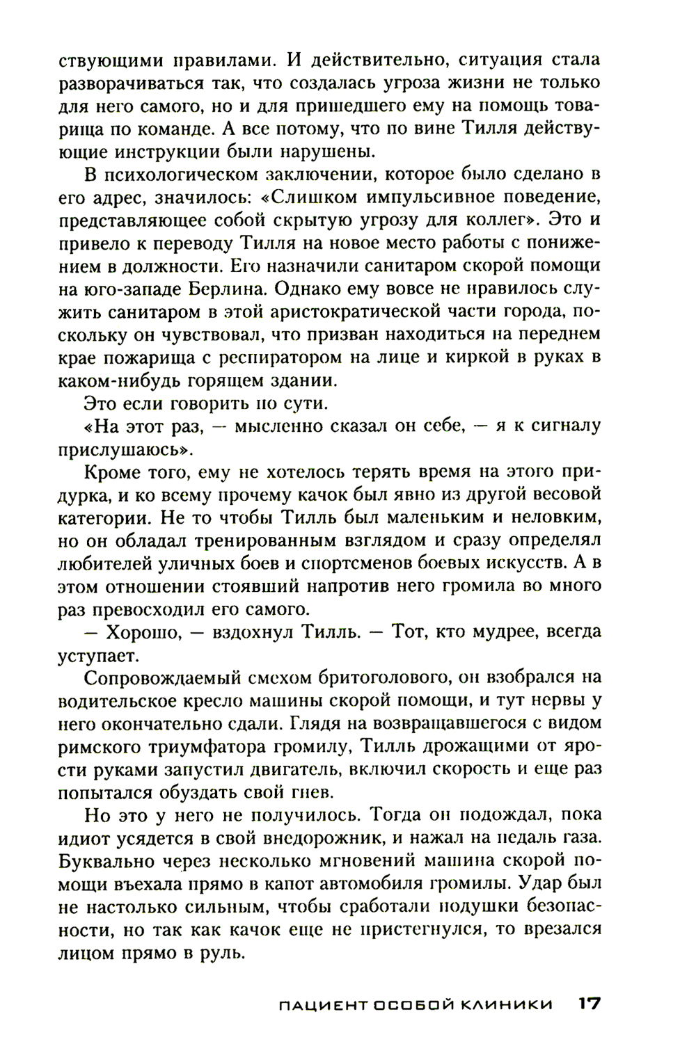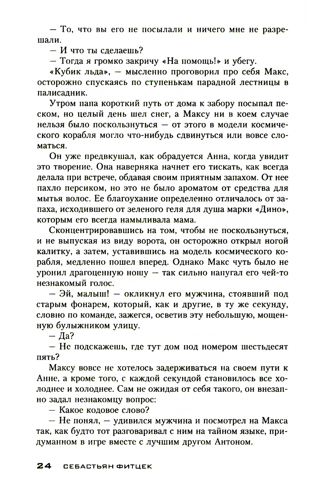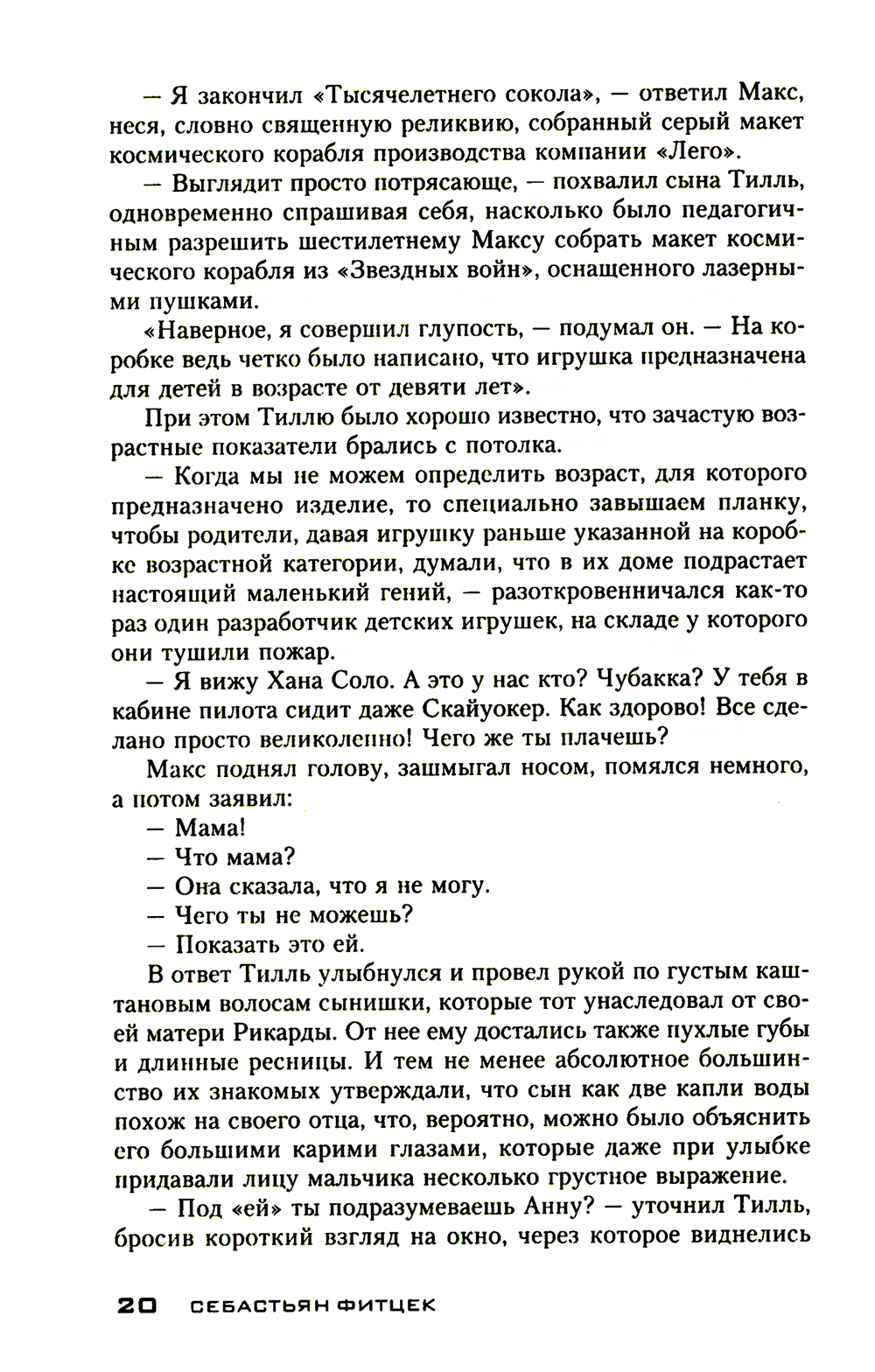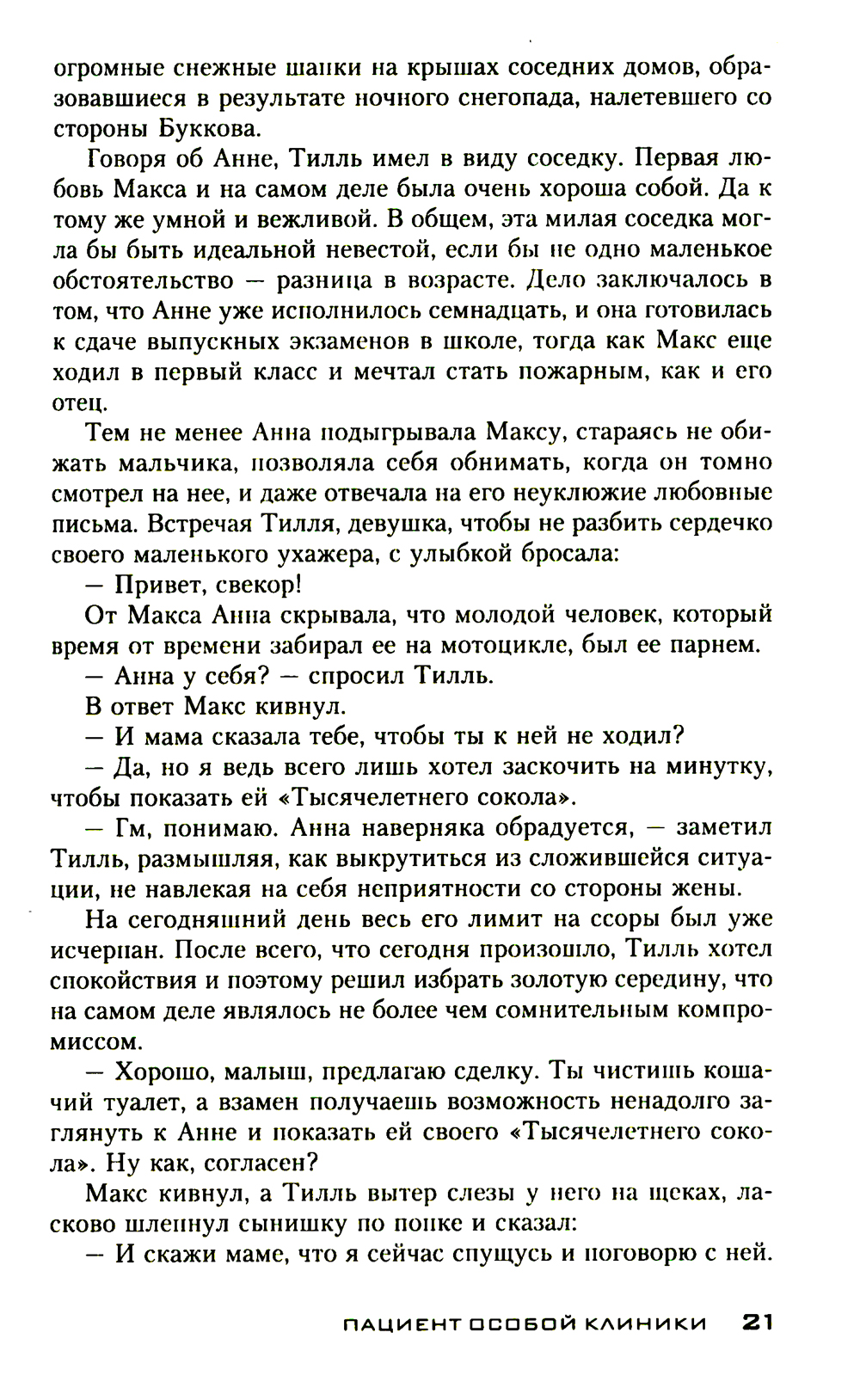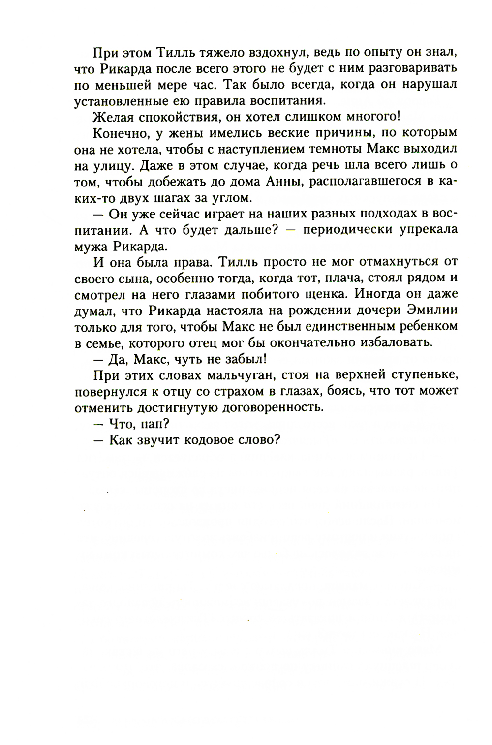 У Тилля Беркхоффа бесследно пропадает сын Макс. Все улики свидетельствуют о том, что мальчик стал жертвой маньяка Гвидо Трамница. Преступник арестован полицией и признался в похищении и убийстве нескольких маленьких детей. Место их захоронения серийный убийца указал, однако о судьбе Макса хранит упорное молчание. Суд признает садиста невменяемым и отправляет его в строго охраняемую психиатрическую лечебницу. Следствию известно о том, что психопат вел дневник, где описывал все, что сделал с жертвами, но найти записи не удалось. Отчаявшийся отец обращается за содействием к знакомому сотруднику полиции, и тот делает ему невероятное предложение: стать пациентом этой особой клиники. Так он сможет оказаться ближе к детоубийце и заставить его признаться. Того, чем обернется эта отчаянная попытка, не ожидал никто.| Издательство | Центрполиграф |