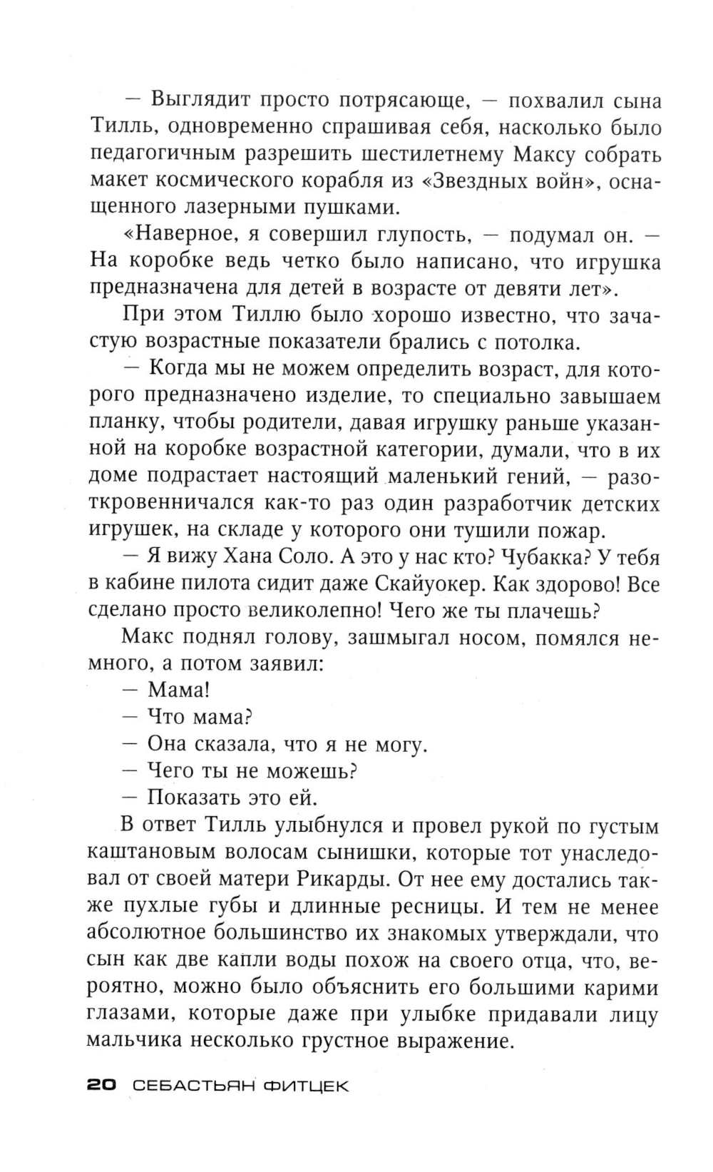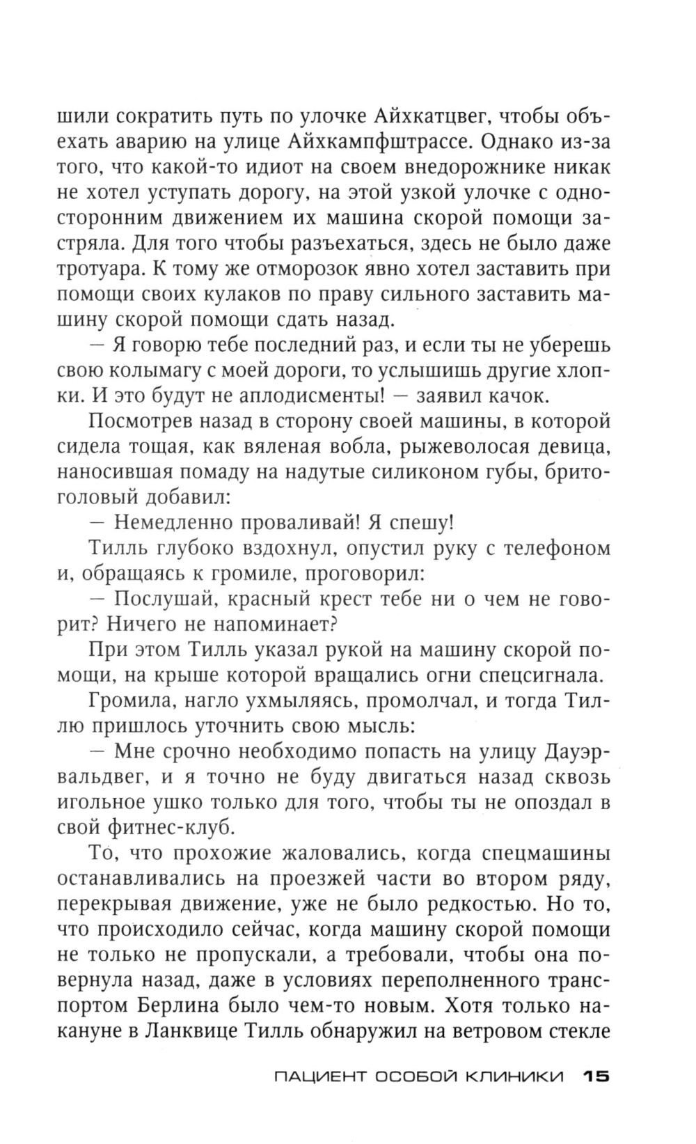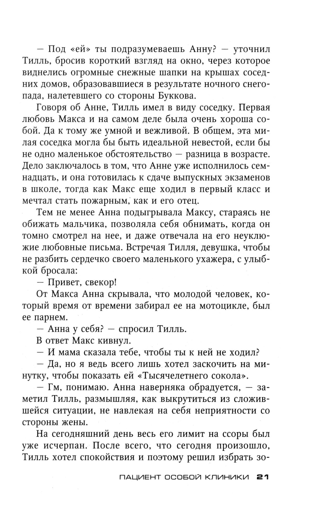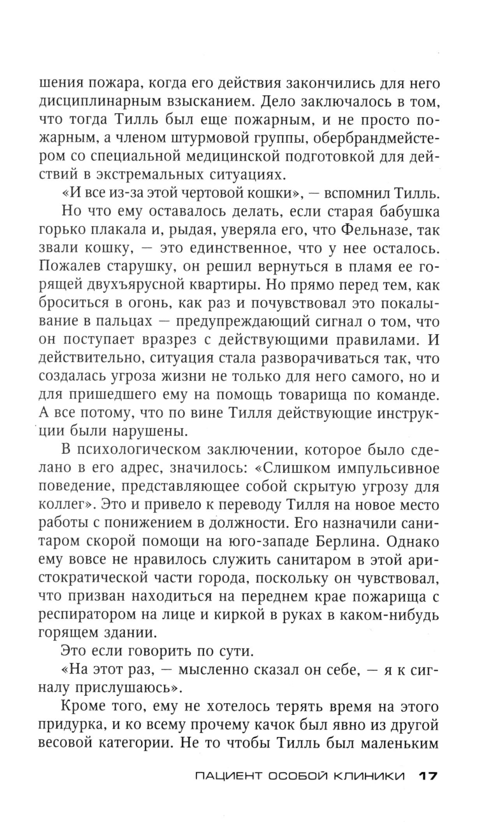 У Тилля Беркхоффа бесследно пропадает сын Макс. Все улики свидетельствуют о том, что мальчик стал жертвой маньяка Гвидо Трамница. Преступник арестован полицией и признался в похищении и убийстве нескольких маленьких детей. Место их захоронения серийный убийца указал, однако о судьбе Макса хранит упорное молчание. Суд признает садиста невменяемым и отправляет его в строго охраняемую психиатрическую лечебницу. Следствию известно о том, что психопат вел дневник, где описывал все, что сделал с жертвами, но найти записи не удалось. Отчаявшийся отец обращается за содействием к знакомому сотруднику полиции, и тот делает ему невероятное предложение: стать пациентом этой особой клиники. Так он сможет оказаться ближе к детоубийце и заставить его признаться. Того, чем обернется эта отчаянная попытка, не ожидал никто.| Издательство | Центрполиграф |
