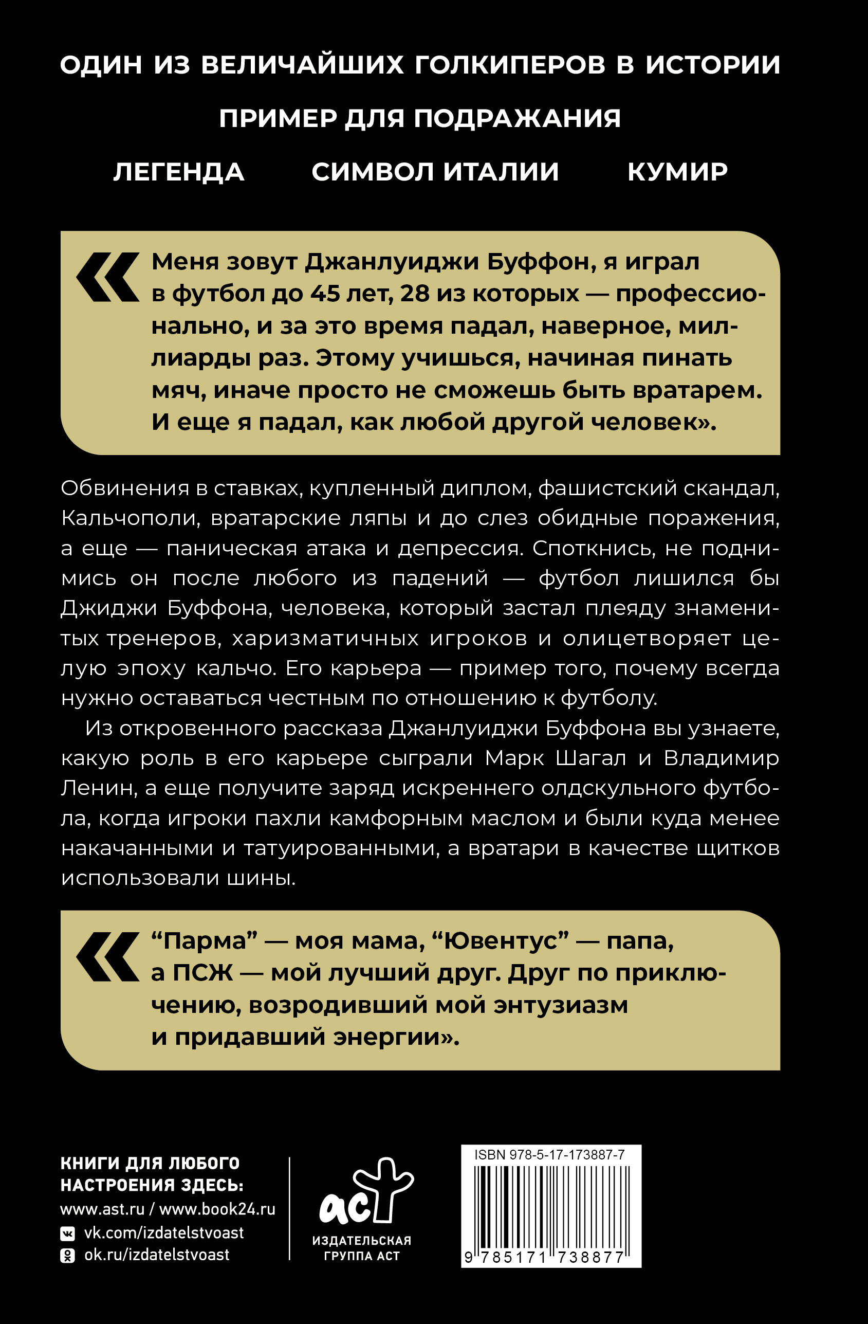 "Меня зовут Джанлуиджи Буффон, я играл в футбол до 45 лет, 28 из которых - профессионально, и за это время падал, наверное, миллиарды раз. Этому учишься, начиная пинать мяч, иначе просто не сможешь быть вратарем. И еще я падал, как любой другой человек". Обвинения в ставках, купленный диплом, фашистский скандал, Кальчополи, вратарские ляпы и до слез обидные поражения, а еще - паническая атака и депрессия. Споткнись, не поднимись он после любого из падений, - футбол лишился бы Джиджи Буффона, человека, который застал плеяду знаменитых тренеров, харизматичных игроков и олицетворяет целую эпоху кальчо. Его карьера - пример того, почему всегда нужно оставаться честным по отношению к футболу. Из откровенного рассказа Джанлуиджи Буффона вы узнае те, какую роль в его карьере сыграли Марк Шагал и Владимир Ленин, а еще получите заряд искреннего олдскульного футбола, когда игроки пахли камфорным маслом и были куда менее накачанными и татуированными, а вратари в качестве щитков использовали шины.| Издательство | Издательство "АСТ" |