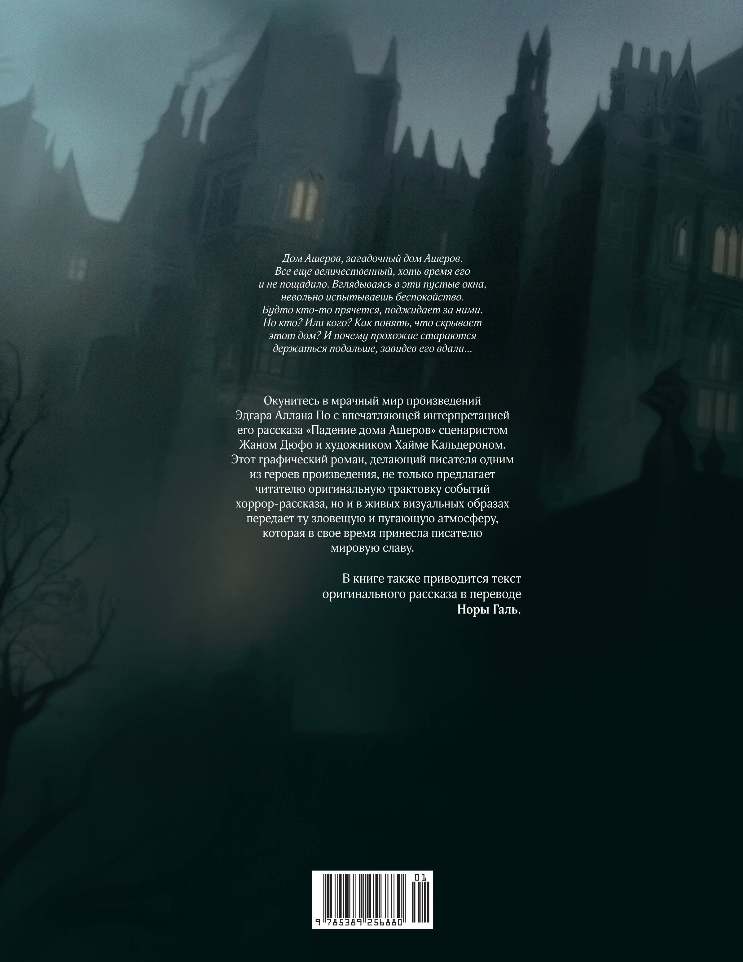 "Дом Ашеров, загадочный дом Ашеров. Все еще величественный, хоть время его и не пощадило. Вглядываясь в эти пустые окна, невольно испытываешь беспокойство. Будто кто-то прячется, поджидает за ними. Но кто? Или кого? Как понять, что скрывает этот дом? И почему прохожие стараются держаться подальше, завидев его вдали…" Окунитесь в мрачный мир произведений Эдгара Аллана По с впечатляющей интерпретацией его рассказа "Падение дома Ашеров" сценаристом Жаном Дюфо и художником Хайме Кальдероном. Этот графический роман, делающий писателя одним из героев произведения, не только предлагает читателю оригинальную трактовку событий хоррор-рассказа, но и в живых визуальных образах передает ту зловещую и пугающую атмосферу, которая в свое время принесла писателю мировую славу. В книге также приводится текст оригинального рассказа в переводе Норы Галь.