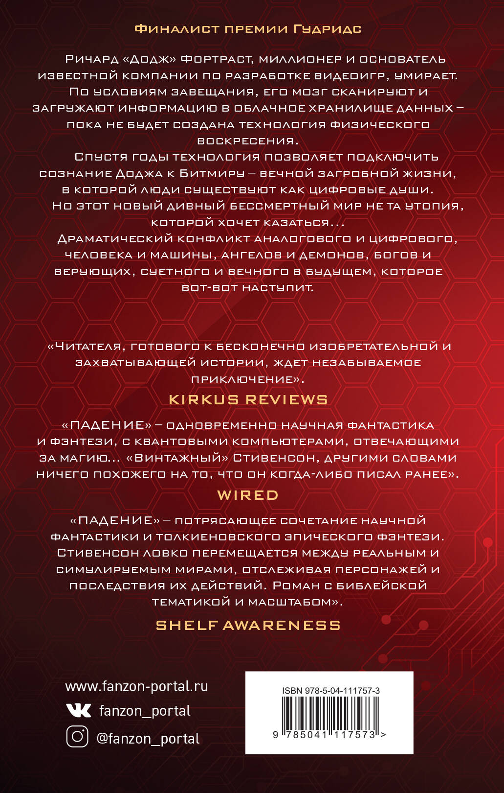Недалекое будущее. Мозг Ричарда Доджа Фортраста после смерти оцифровывают, а электронное сознание миллионера и разработчика хитовых видеоигр загружают в виртуальную реальность. Это Битмир, в нем существуют после смерти цифровые души загруженных людей. Там есть и боги, и ангелы. И демоны. Доджу придется пройти путешествие героя, чтобы найти и обрести себя. Второй том эпического романа Нила Стивенсона. «Новый роман "посткиберпанка" Нила Стивенсона - это ПОТЕРЯННЫЙ РАЙ в духе Филипа К. Дика». - AMAZON.COM «Футуристические идеи, особенно связанные с ИИ и цифровым сознанием, заинтригуют не только гиков и любителей фантастики». - BOOKLIST «Единственный в своем роде синтез смелости и оригинальности, без боязни рисковать на дикой и неизведанной концептуальной территории». - NEW YORK TIMES BOOK REVIEW «Стивенсон не просто играет словами, он играет нешуточными идеями. Он - великая "белая ворона" научной фантастики, и "ПАДЕНИЕ" заслуживает оценки как один из великих пророческих и философских романов нашего времени». - WALL STREET JOURNAL «"ПАДЕНИЕ" Нила Стивенсона исследует вопросы высшего сознания, будущего сети Интернет и создания виртуального мира - все в одном умопомрачительном приключении». - SLATE «Как и Додж, Стивенсон создает новую вселенную с нуля, сражаясь в битвах и реализуя Большую идею. Те из нас, кто привязан к meatspace, могут только молча сидеть и с удивлением наблюдать за этим зрелищем». - NATURE «Стивенсон не просто фантаст будущего, он пророк нашего настоящего, виртуальный архитектор идей, определяющих наш мир… автор научной фантастики, который не просто хочет развлекать, но хочет сделать мир лучше - даже если ему придется самому изобрести будущее». - REASON| Издательство | ООО "Издательство "Эксмо" |