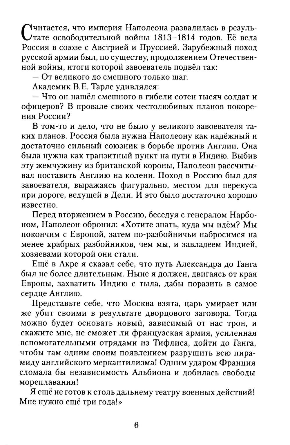 Империя Наполеона пала в результате освободительной войны народов Европы 1813-1814 годов. Ведущую роль в этих событиях сыграла Россия (Заграничный поход русской армии). Это поставило наше Отечество на первое место в политической жизни Европы. В книге, предлагаемой читателям, рассказывается о двух эпохальных событиях эпохи Наполеона: об Освободительной войне и о «Ста днях» Наполеона, когда свергнутый император с тысячей солдат старой гвардии без единого выстрела за двадцать дней покорил Францию и вновь водрузился на престол страны. Случай феноменальный, не имеющий аналогов в мировой истории. Книга имеет популярный характер, но ориентирована на читателей, любящих покопаться в нашем прошлом. Ибо, как говорили древние, умереть, не зная того, что было до того, как ты родился, значит умереть ребёнком.| Издательство | ИПО "У Никитских ворот" |