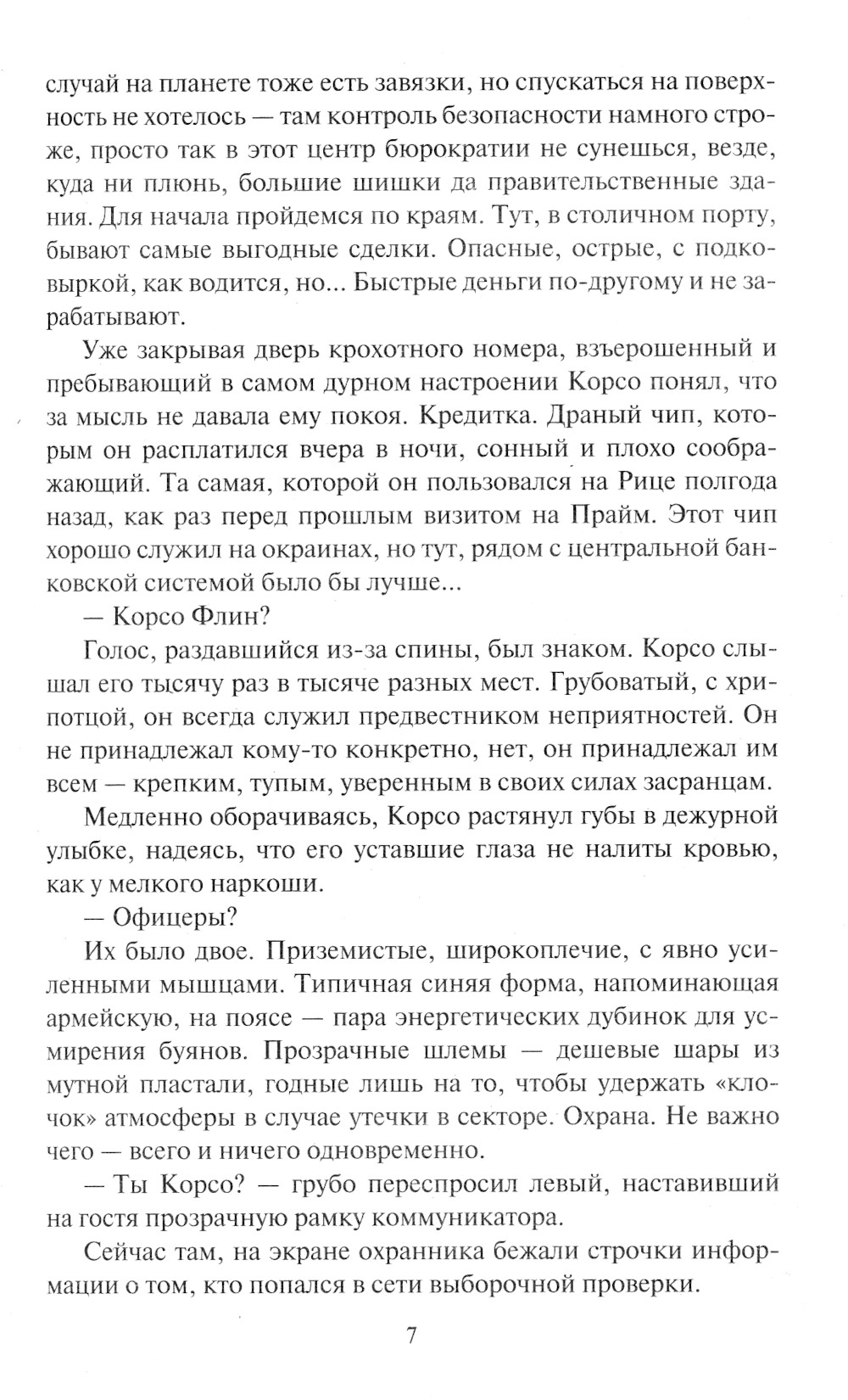 Союз Систем - крупнейшая держава обитаемой зоны, заселенная выходцами с древней Земли. Конфликт соседних государств обернулся масштабной войной, ползущей к Прайму - столице Союза. Грядет война - все против всех. Военные усиливают флот, разведка отправляет особую команду на секретное задание, а случайно оказавшийся среди членов экспедиции контрабандист мечтает спасти только собственную шкуру, а не всю галактику. Военный флот Прайма пытается остановить вторжение и несет потери в боях, ведь у противника есть неожиданный козырь - черные корабли. Никто не знает, откуда приходят эти корабли, ставшие главной ударной силой неожиданного вторжения. Неизвестно, чего хотят их экипажи, зачем они разрушают' все на своем пути. И почему в пустоте космоса, на аварийных волнах, умирающие шепчут: «Не подпускайте их близко».| Издательство | Альфа-книга |