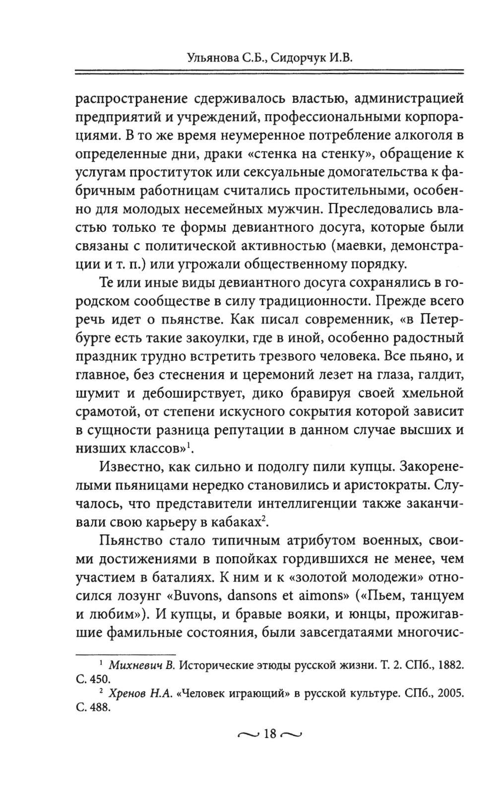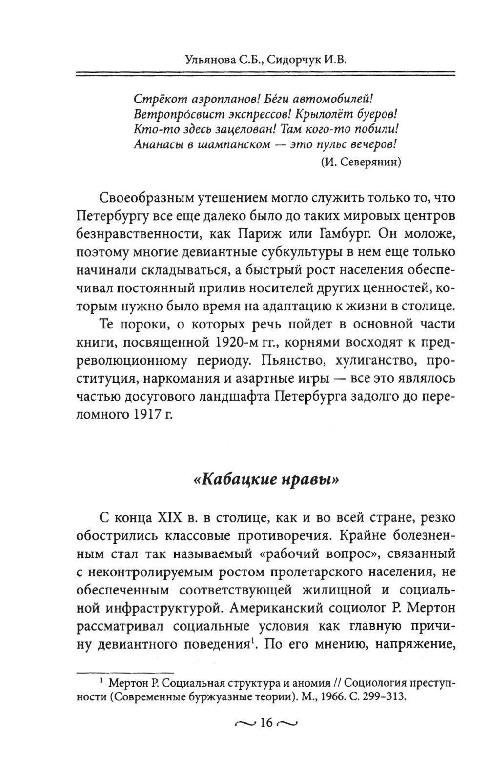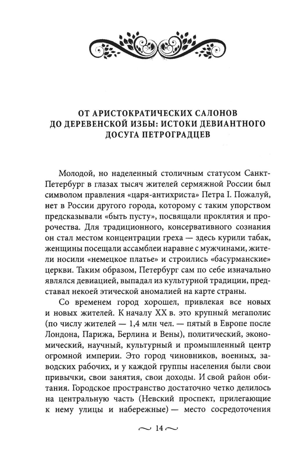 Поведение, не принимаемое обществом или законом, существует в любом социуме. Проблемы наркомании, алкоголизма, проституции и прочие пагубные страсти являются частью массовой культуры и предметом научного изучения. Книга посвящена асоциальным и нетрадиционным формам свободного времяпрепровождения жителей Петрограда-Ленинграда в 1920-е годы. Этот период выбран не случайно. На смену Гражданской войне, «красному» и «белому» террорам, голоду и эпидемиям сыпного тифа, повлекшим за собой гибель миллионов человек, в марте 1921 г. пришла новая экономическая политика - НЭП, существенно повлиявшая на культуру... Книга напитана текстами того времени, чтобы полнее передать «дух эпохи», дать читателю «услышать» голоса современников описываемых событий. Авторов привлекала не столько борьба с теми или иными общественными пороками, сколько характер их распространения в досуговой сфере, мотивация потребителей различных видов девиантного досуга и инфраструктура его предложения.| Издательство | Центрполиграф |