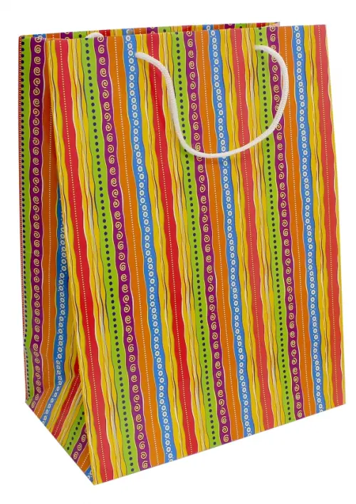 Пакет бумажный. С ламинацией. Размер 26 х 33 х 12,5 см. Ручки-шнурки. Материал: бумага. Сделано в России.