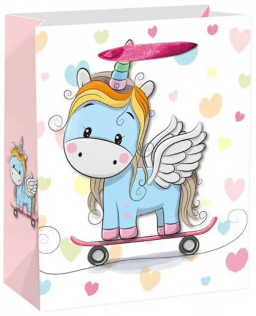 Пакет подарочный "Единорог на скейте", 18х23х10 см