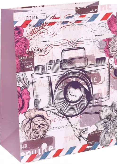 Пакет подарочный "Фотоаппарат в цветах", 18х23х10 см