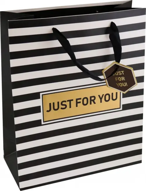 Элегантные, тёмные полоски отлично контрастируют со светлым фоном. Ручки пакета окрашены в преобладающий у изделия чёрный цвет.