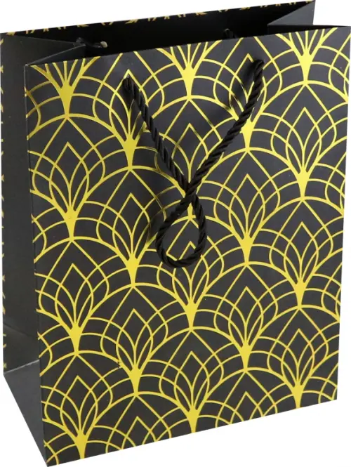 Подарочный пакет: плотный, цветной с рисунком-золотое тиснение; размер 18*23*10 см.