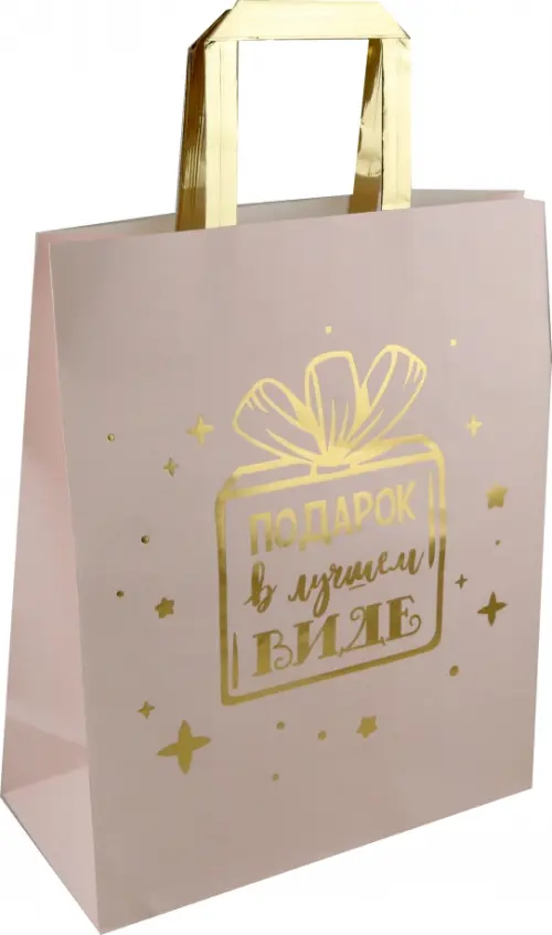 Пакет из крафт-бумаги "Подарок" с золотым тиснением для сувенирной продукции, с шириной основания 26 см, плотность бумаги 120г/м2 / 26х32.4х12.7 см.