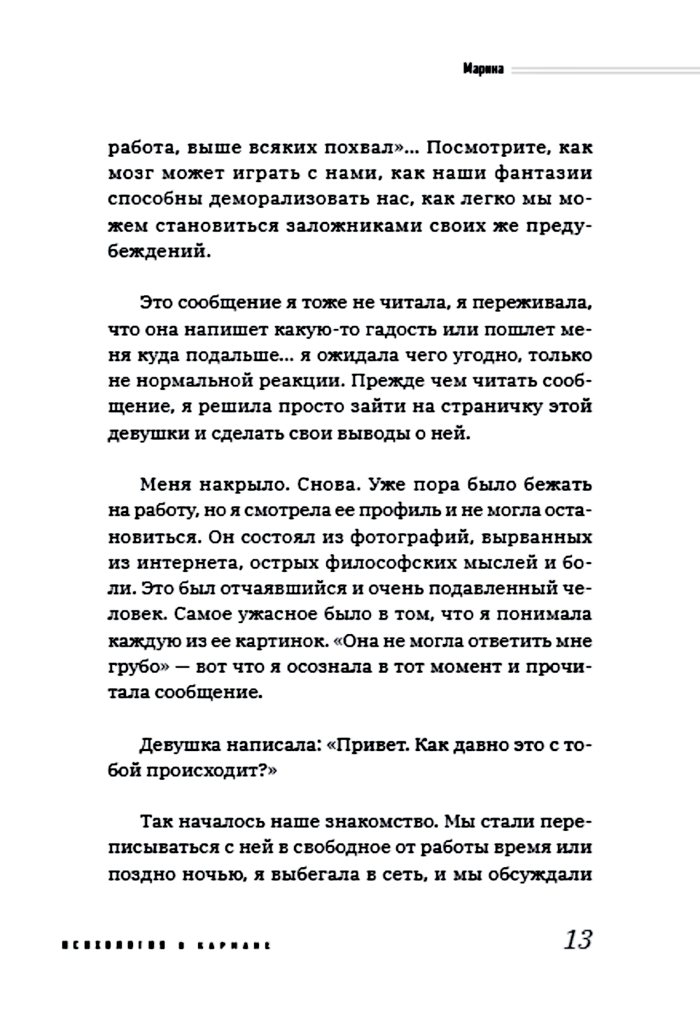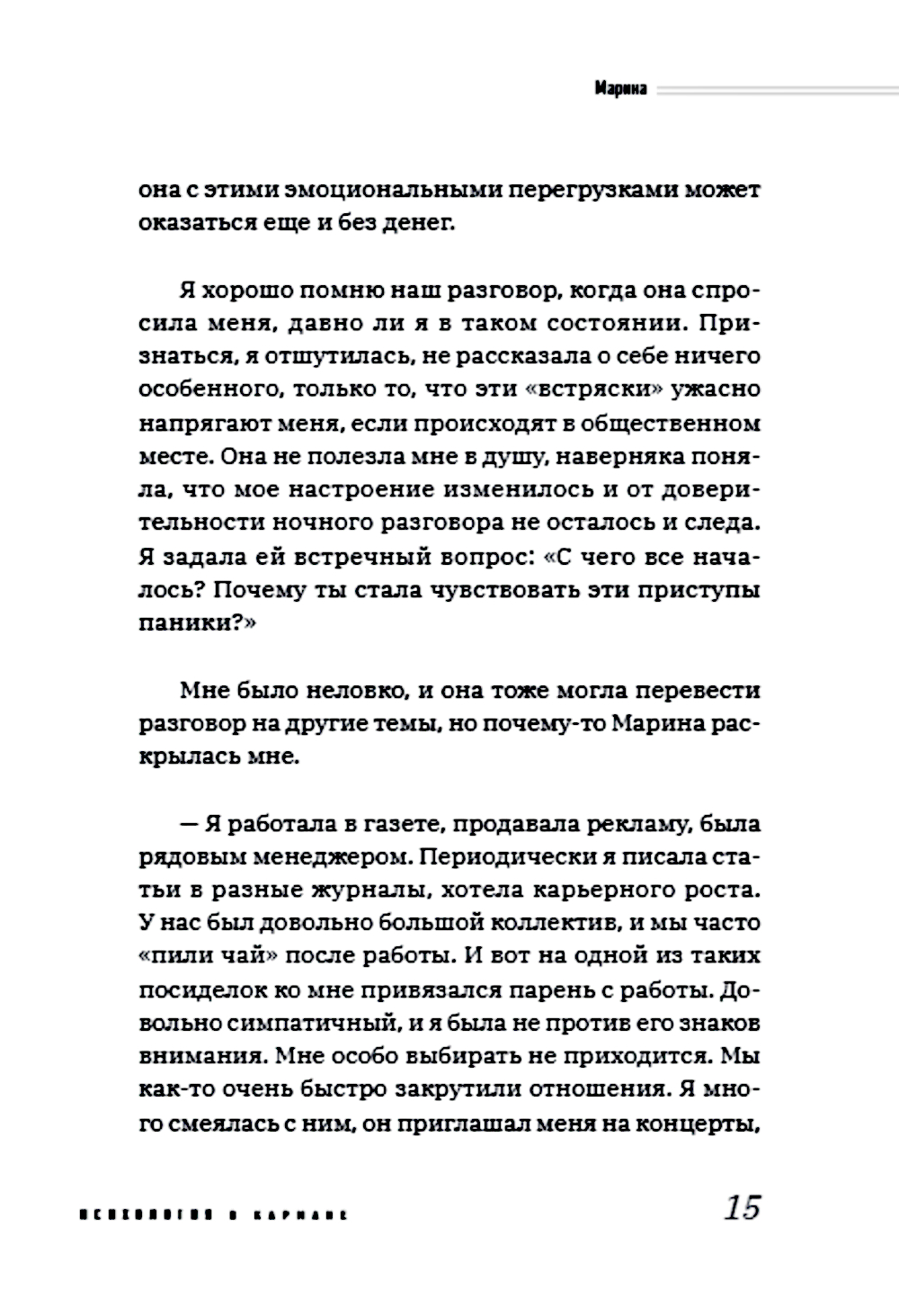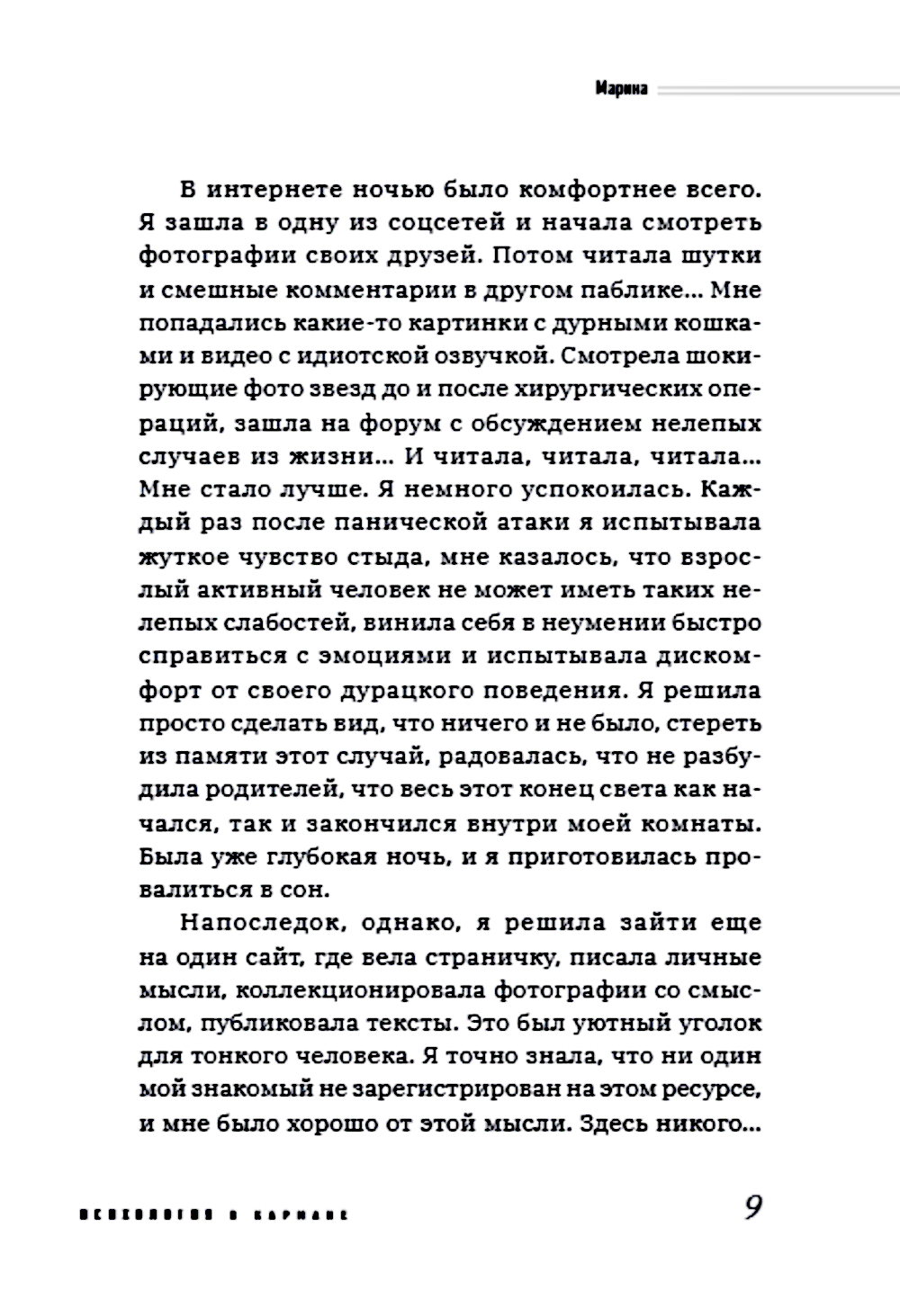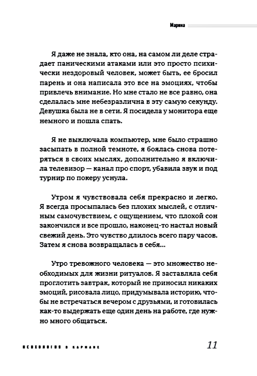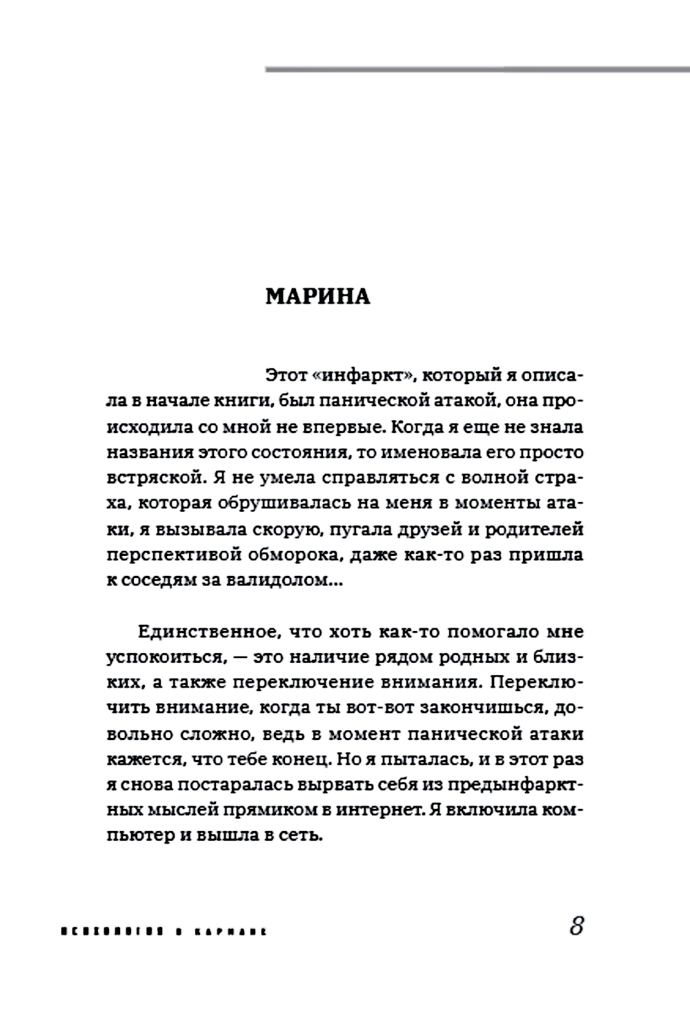 Каково жить с паническими атаками и можно ли от них избавиться? В поисках ответов на эти вопросы автор проходит долгий путь от ощущения полной беспомощности до уверенности в том, что каждый из нас может победить даже себя самого. Эта книга - результат долгих разговоров с людьми, которые совершенно не принадлежали себе, но все-таки научились понимать собственные желания и контролировать свои эмоции. Четыре реальные истории собеседников автора и пятая - ее собственная - представляют взгляд на проблему панических атак не с высоты научных знаний, не с позиции лечащего врача или практикующего психолога, а изнутри. И это тот случай, когда личный опыт человека, знающего о проблеме не понаслышке, может стать точкой опоры и инструментом для спасения других людей.| Издательство | Городец |