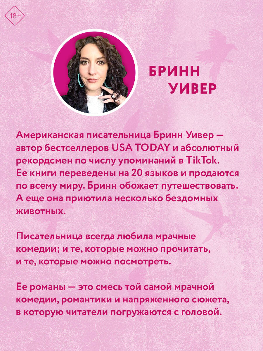 Иногда, чтобы выжить, нужно быть с тем, кто может тебя убить. Погрузитесь в мрачный мир, созданный Бринн Уивер, в котором любовь написана кровью. «Палач и Дрозд» - первая книга цикла «Птички в клетке». Абсолютный хит TikTok. Готовится экранизация. Стильный покет с клапанами, кремовая бумага и та самая обложка с яркой розовой фольгой, взорвавшая Букток. Он - суровый и безжалостный, как палач. Она - яркая и свободолюбивая, как птичка. Каждый август они встречаются, чтобы сыграть в смертельную игру. Потому что они - охотники за головами и у каждого - свой почерк. Когда мрачное прошлое начинает угрожать их жизням, герои понимают: чтобы выжить, им придется стать союзниками. Но можно ли любить того, кто держит нож за спиной? Только в первом тираже - эксклюзивный подарок в каждой книге, который может стать вашим выигрышным билетом в розыгрыше от книжного клуба «Сорри, я не твоя лав стори». Сезон охоты начался. Испытайте удачу и окажитесь в числе десяти счастливчиков. «Что будет, если соединить страсть и мрак, жестокость и юмор, кровавую месть и нежность? Роман "Палач и Дрозд"! Эта история балансирует на гранях дозволенного, заставляя то смеяться, то затаить дыхание. Приготовьтесь удивляться (и, возможно, краснеть от смущения)». - Саша Кулич
