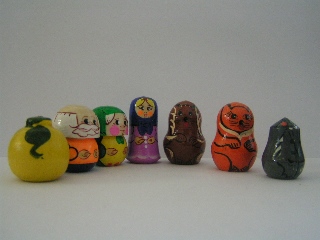 В наборе: 7 деревянных фигурок, средний размер фигурок - 3х2 см, высотой 2.5-3.5 см, диаметр репки - 2,5 см, дырочка внизу для детского пальчика.
