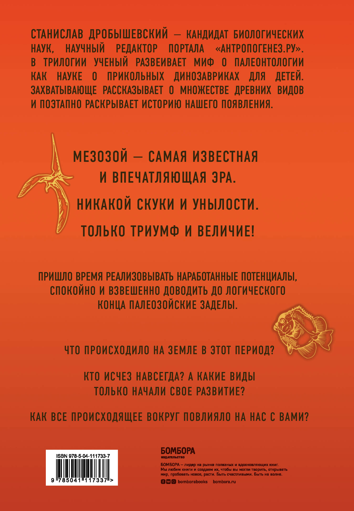 Мезозой - это триумф, это величие! Вторая часть трилогии «Палеонтология антрополога» известного российского популяризатора науки Станислава Дробышевского иллюстрирует картину нашей Земли в мезозойскую эру. На протяжении большей части мезозоя развитие шло как в замедленной съемке. В этот период появились цветковые растения и бабочки, черепахи и змеи, птицы и млекопитающие. Исчезли динозавры, птерозавры, ихтиозавры, плезиозавры, мозазавры и прочие «завры». Казалось бы, зачем нам знать о них, если от них не осталось потомства? Если уж такие великолепные существа, в течение многих эпох правившие планетой, не справились, мы-то точно не сдюжим? Но нет! Существование аммонитов, плезиозавров и всех прочих странных созданий минувшего не прошло впустую. Своей ежедневной жизнью они влияли на экосистемы, меняли мир, в котором обитали, заставляя и наших предков эволюционировать. Не будь их, не было бы никаких гарантий, что один из видов спустя еще шестьдесят три миллиона лет взял бы в каждую руку по камню и начал новую эпоху в истории планеты, а возможно - и всей Галактики.| Издательство | ООО "Издательство "Эксмо" |